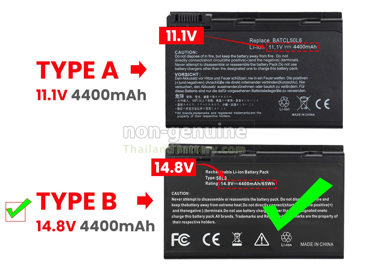 2 เปรียบเทียบแรงดันไฟฟ้าและความจุของแบตเตอรี่กับแบตเตอรี่ Acer 90NCP51LD4SU2 ของเรา และตรวจสอบว่าอินเทอร์เฟซและรูปภาพของแบตเตอรี่เหมือนกันกับภาพในเว็บไซต์ของเราหรือไม่