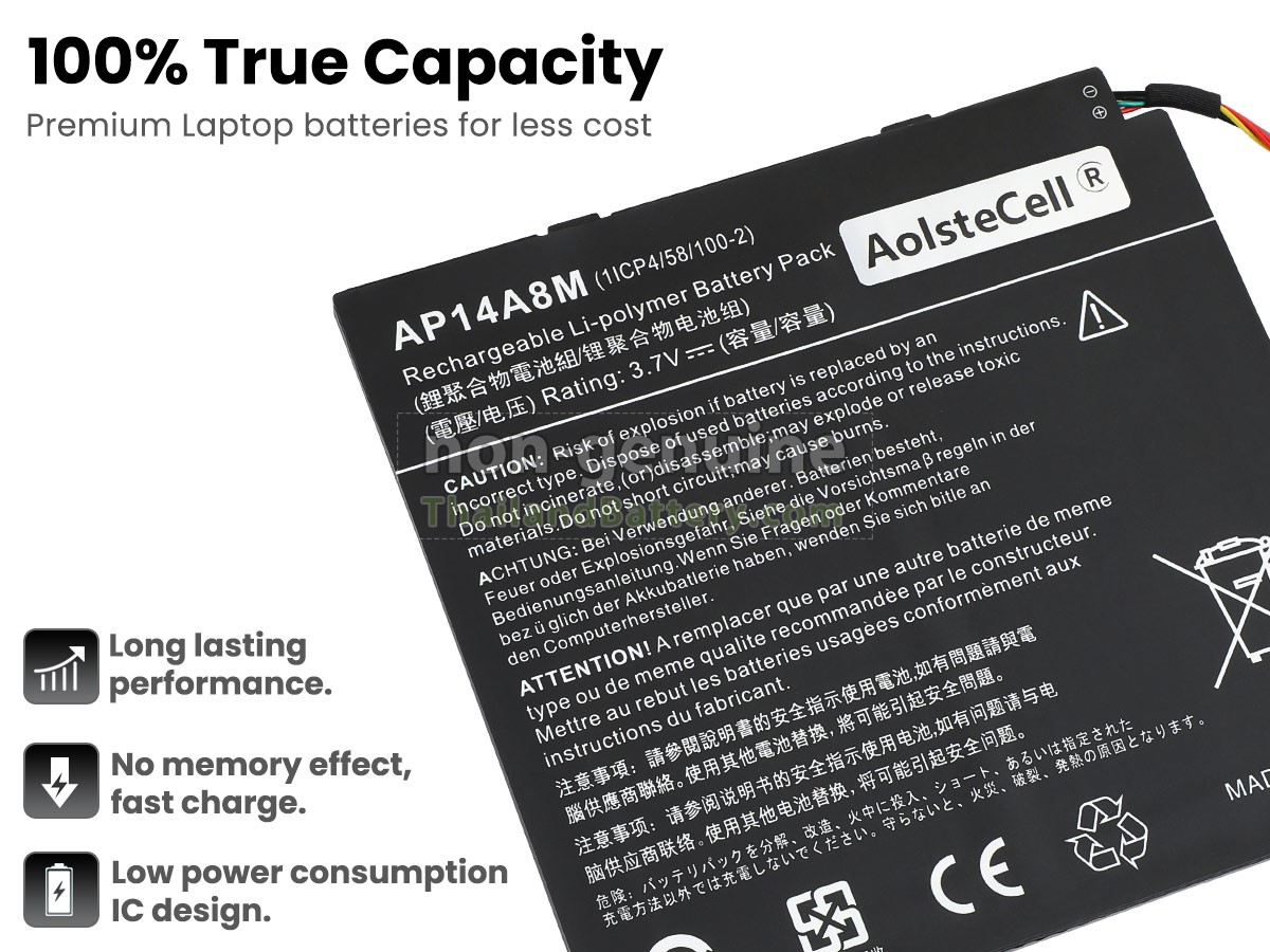 แบตเตอรี่ทดแทน Acer Aspire SWITCH 10 นี้ มีสเปคเดียวกับผู้ผลิตดั้งเดิม สามารถใช้งานได้กับอุปกรณ์ Acer ของท่านได้ 100% ฟังก์ชันและประสิทธิภาพการใช้งานของแบตเตอรี่ยังคงเท่ากับ Aspire SWITCH 10 รุ่นเดิม