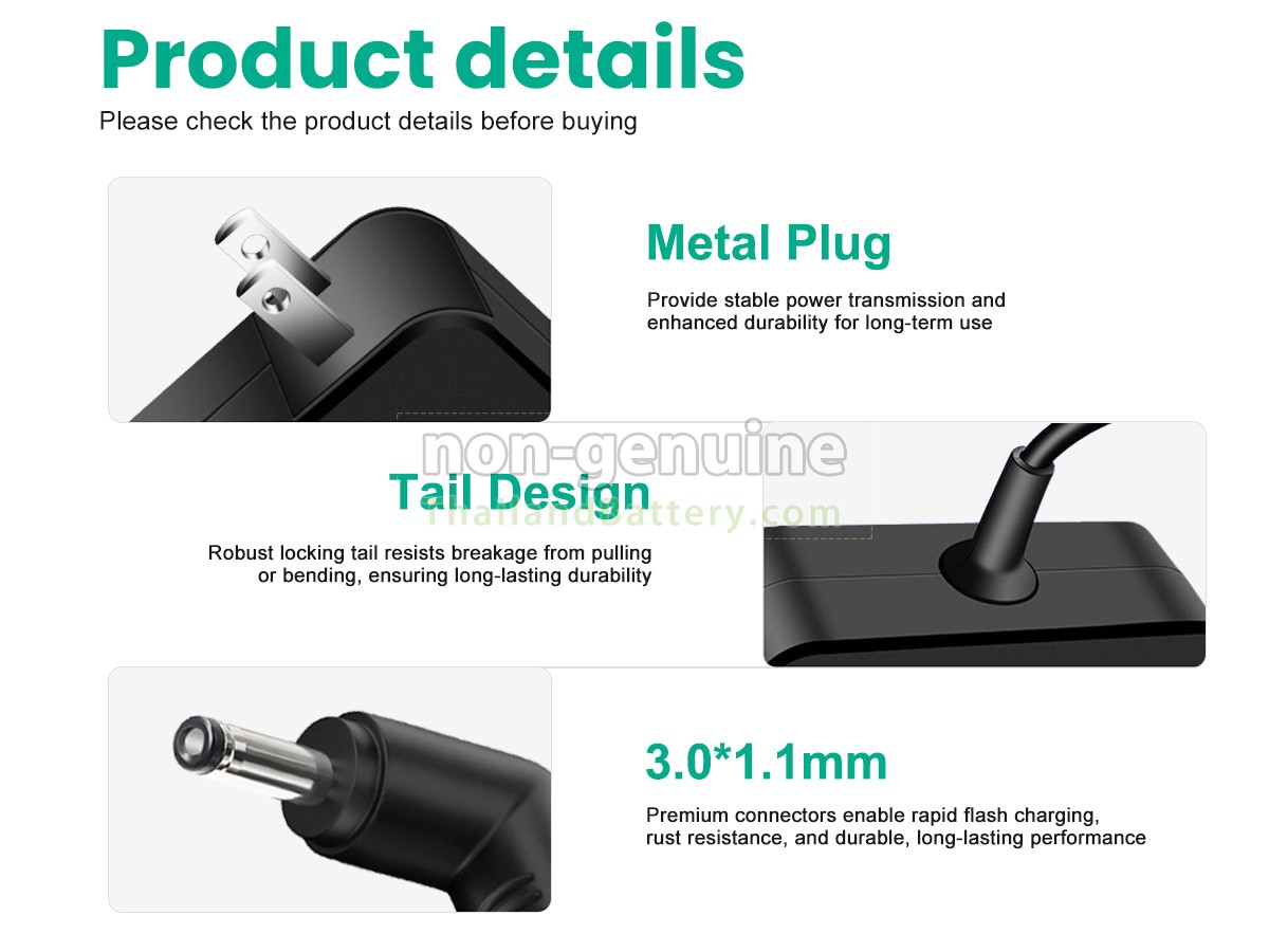 2 ตรวจสอบให้แน่ใจว่าประเภทและขนาดของอินเทอร์เฟซของอุปกรณ์ของคุณตรงกับอะแดปเตอร์สำหรับ Acer 45W 19V-2.37A 3.0*1.1MM