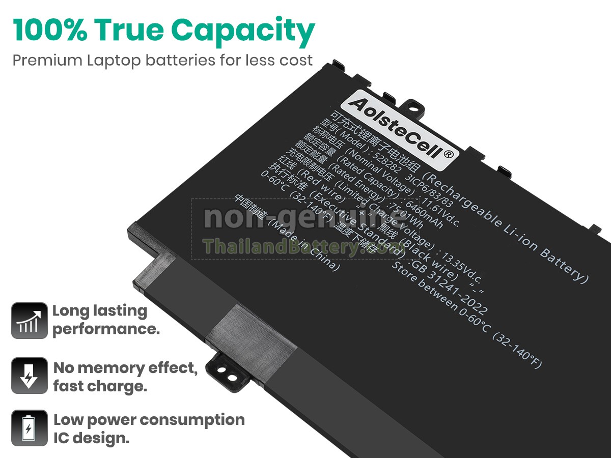 แบตเตอรี่ AolsteCell 528282 แต่ละชิ้นทำจากลิเธียมไอออนระดับ A+ คุณภาพสูง ซึ่งเป็นที่ดั้งเดิมจาก Samsung Panasonic และ LG ชิปวงจรอัจฉริยะ วัสดุสามารถทนต่ออุณหภูมิสูงและการสึกหรอ เปลือกแบตเตอรี่ ABS + PC วัสดุที่เป็นมิตรกับสิ่งแวดล้อม ประสิทธิภาพสูง รับรองความปลอดภัยด้วย