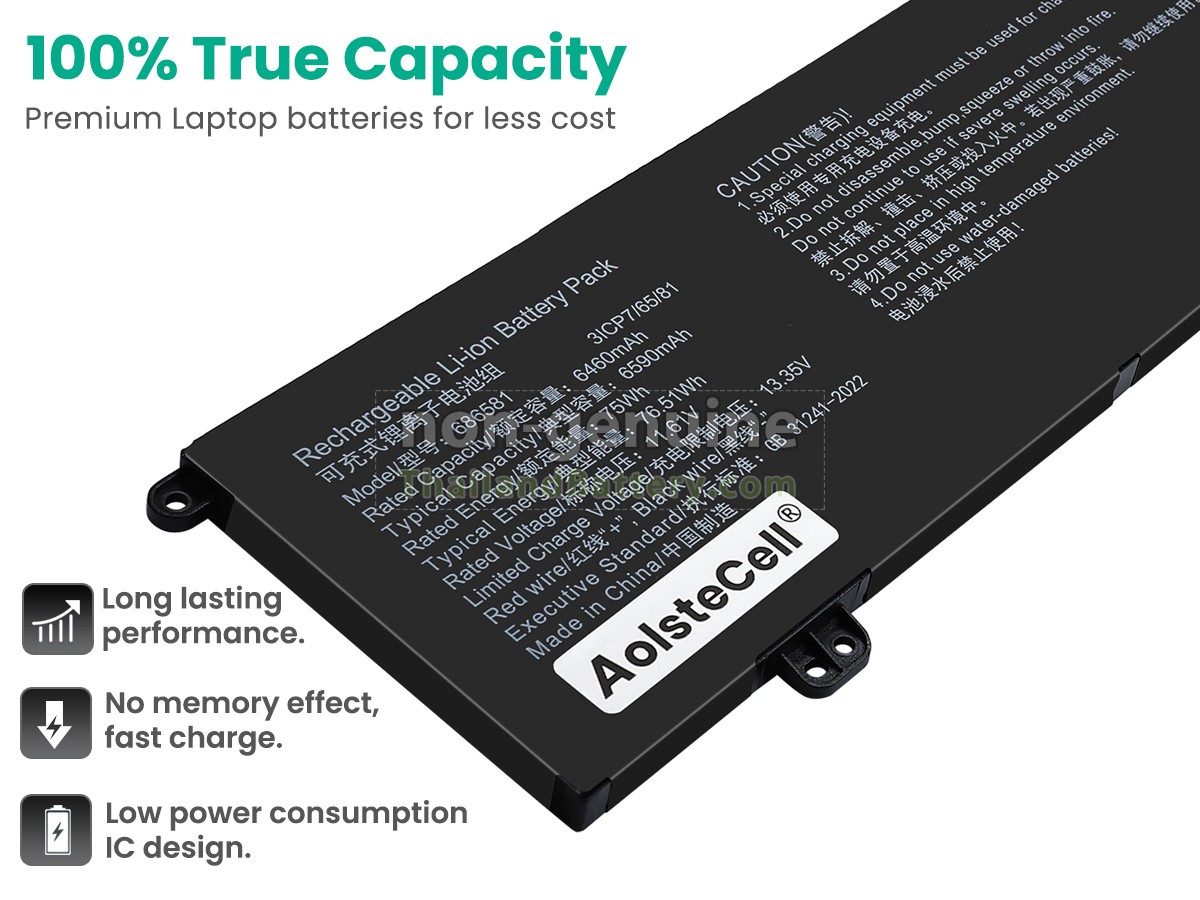 แบตเตอรี่ AolsteCell 686581 แต่ละชิ้นทำจากลิเธียมไอออนระดับ A+ คุณภาพสูง ซึ่งเป็นที่ดั้งเดิมจาก Samsung Panasonic และ LG ชิปวงจรอัจฉริยะ วัสดุสามารถทนต่ออุณหภูมิสูงและการสึกหรอ เปลือกแบตเตอรี่ ABS + PC วัสดุที่เป็นมิตรกับสิ่งแวดล้อม ประสิทธิภาพสูง รับรองความปลอดภัยด้วย