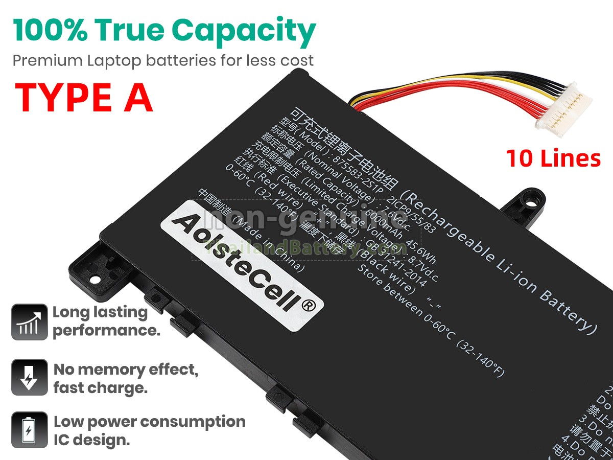 แบตเตอรี่ทดแทน AolsteCell 875583-2S1P ใหม่ล่าสุด คุณสมบัติดังต่อไปนี้