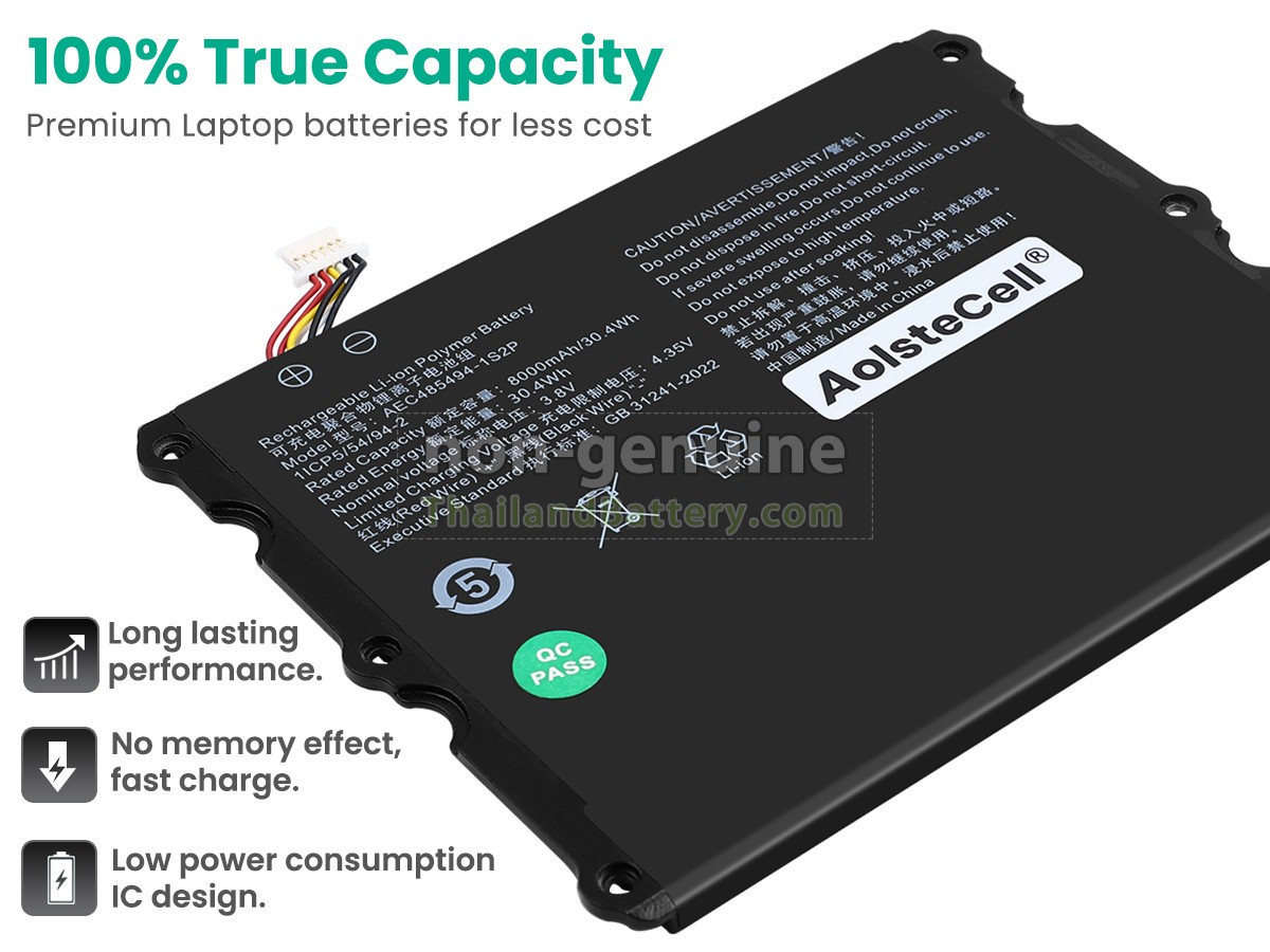 แบตเตอรี่ AolsteCell AEC485494-1S2P แต่ละชิ้นทำจากลิเธียมไอออนระดับ A+ คุณภาพสูง ซึ่งเป็นที่ดั้งเดิมจาก Samsung Panasonic และ LG ชิปวงจรอัจฉริยะ วัสดุสามารถทนต่ออุณหภูมิสูงและการสึกหรอ เปลือกแบตเตอรี่ ABS + PC วัสดุที่เป็นมิตรกับสิ่งแวดล้อม ประสิทธิภาพสูง รับรองความปลอดภัยด้วย