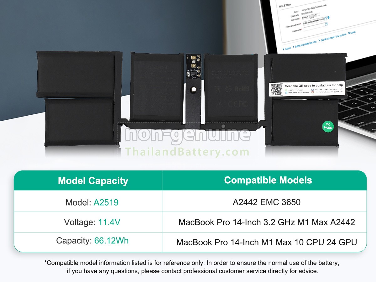 แบตเตอรี่ทดแทน Apple A2519 นี้ มีสเปคเดียวกับผู้ผลิตดั้งเดิม สามารถใช้งานได้กับอุปกรณ์ Apple ของท่านได้ 100% ฟังก์ชันและประสิทธิภาพการใช้งานของแบตเตอรี่ยังคงเท่ากับ A2519 รุ่นเดิม