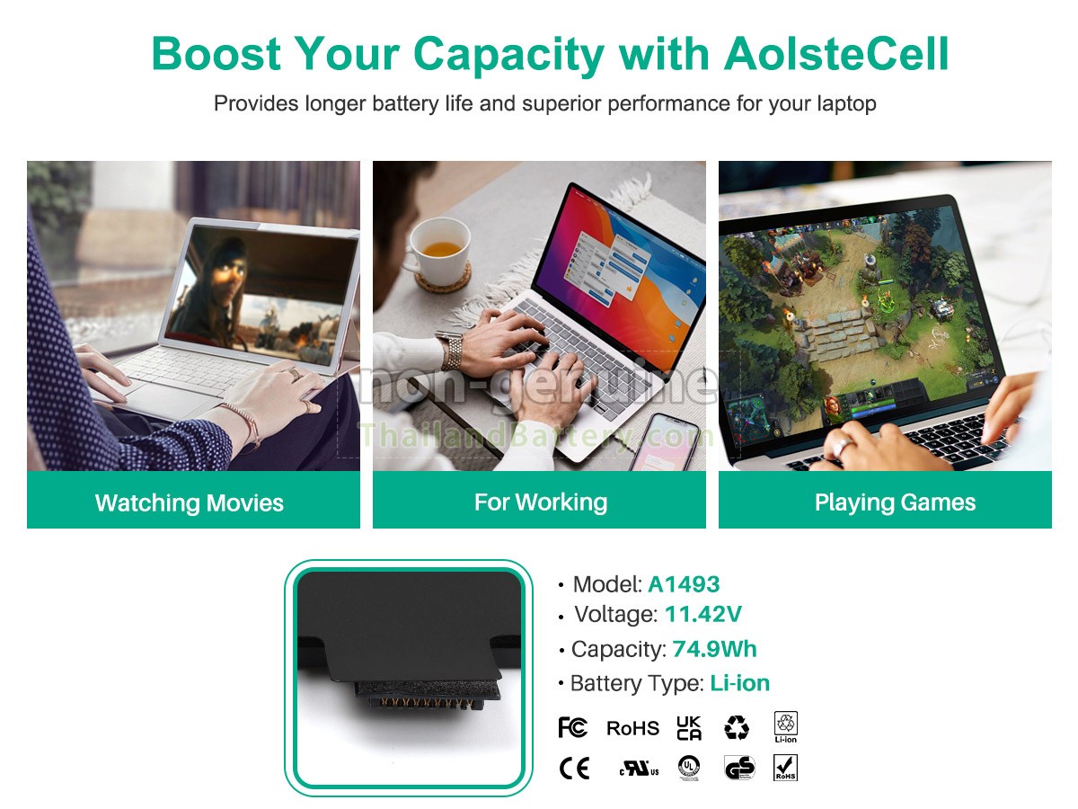 แบตเตอรี่ทดแทน Apple MacBook Pro 13" Retina "Core I5" 2.8G Mid-2014 ใหม่ล่าสุด คุณสมบัติดังต่อไปนี้