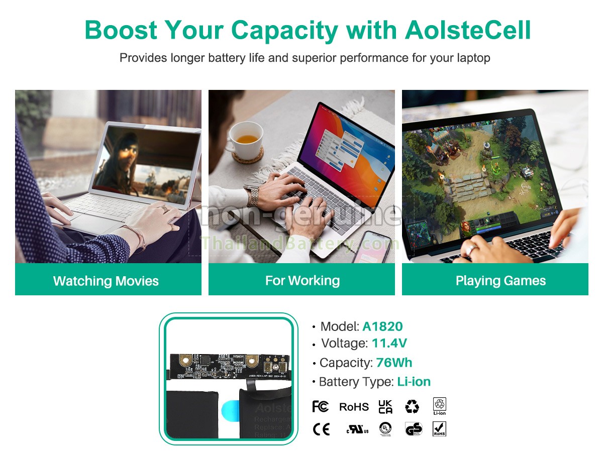 แบตเตอรี่ทดแทน Apple MacBook Pro 15.4 inch TOUCH A1707(EMC 3072) ใหม่ล่าสุด คุณสมบัติดังต่อไปนี้
