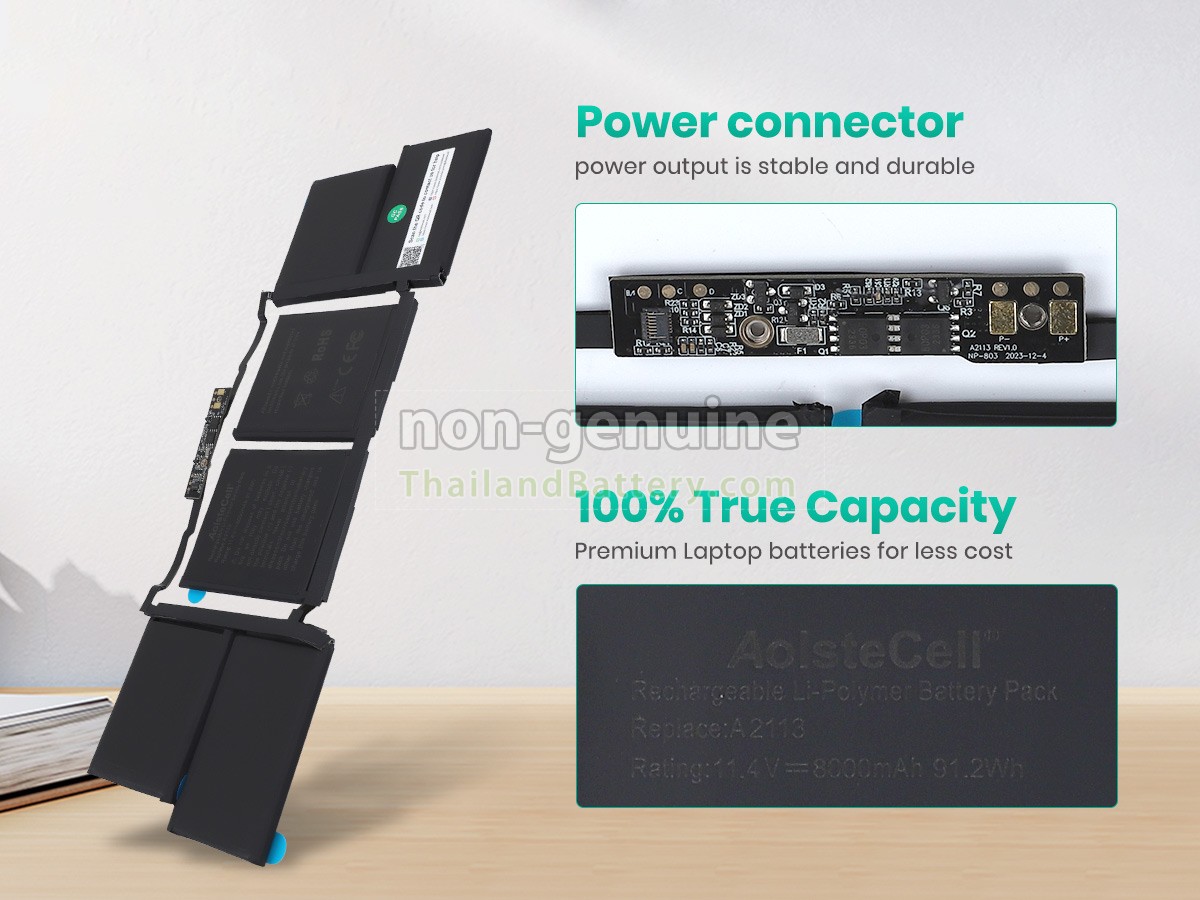 2 เปรียบเทียบแรงดันไฟฟ้าและความจุของแบตเตอรี่กับแบตเตอรี่ Apple MacBook Pro 16-inch Core I9 2.4GHZ 2019 5600M ของเรา และตรวจสอบว่าอินเทอร์เฟซและรูปภาพของแบตเตอรี่เหมือนกันกับภาพในเว็บไซต์ของเราหรือไม่