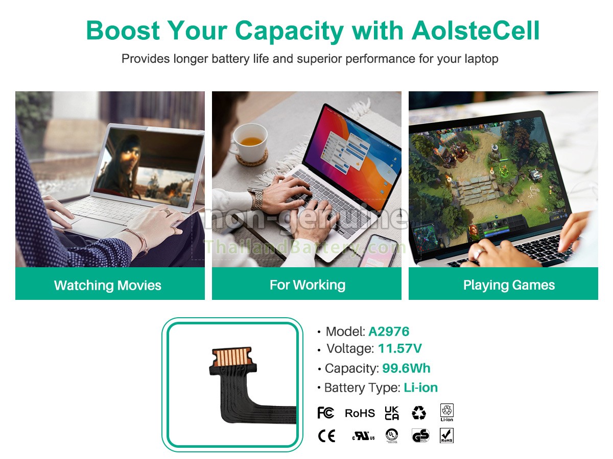 แบตเตอรี่ Apple MacBook Pro 16-inch M3 MAX Late 2023 MUW63LL/A ทั้งหมดได้ผ่านการรับรองความปลอดภัยจาก TISI CE และ UL ตามมาตรฐานสากล นอกจากนี้ ก่อนที่สินค้าออกจากโรงงานต้องผ่านการตรวจสอบอย่างเข้มงวดเพื่อปกป้องการใช้งานที่ปลอดภัยของท่าน!