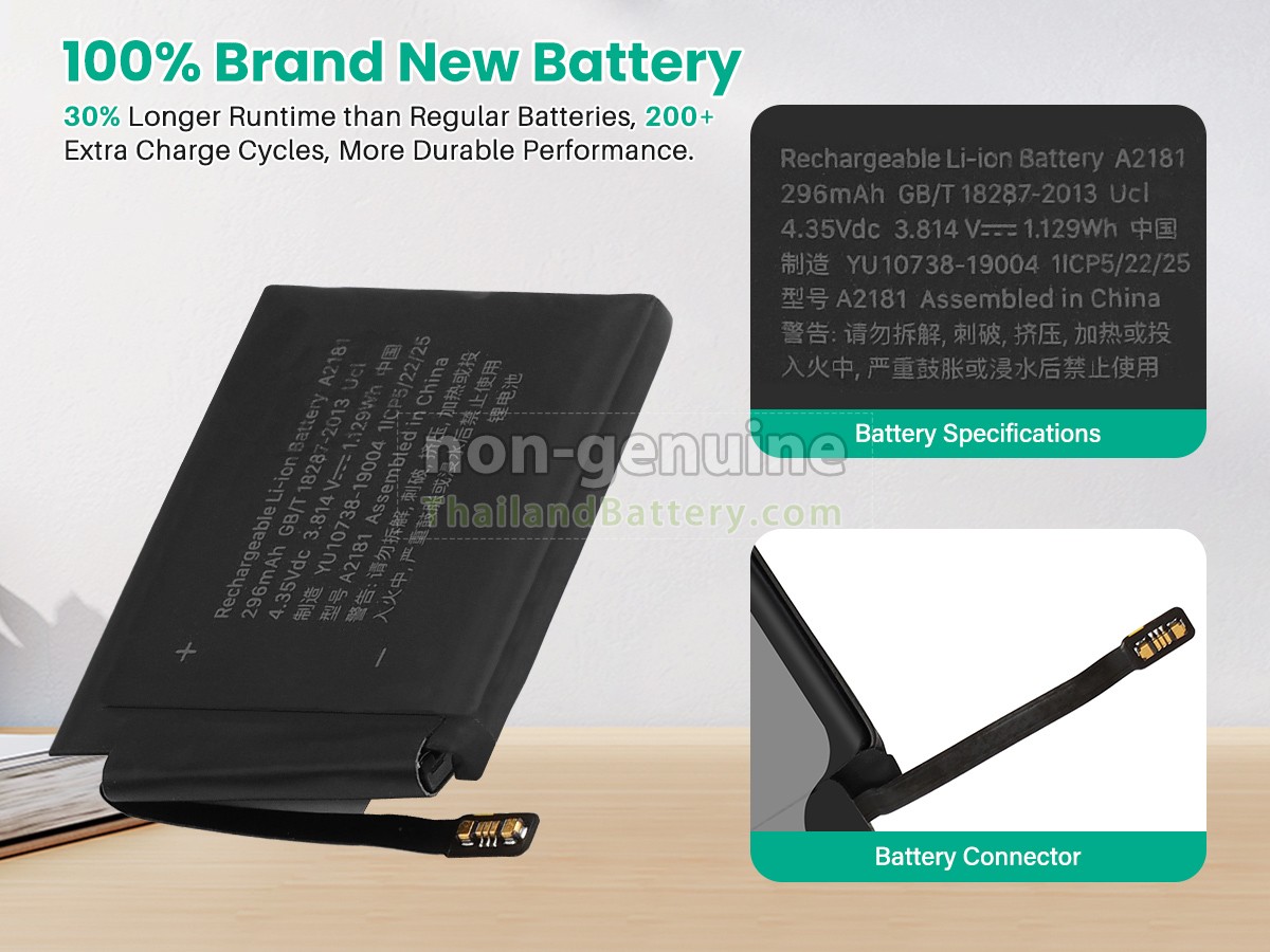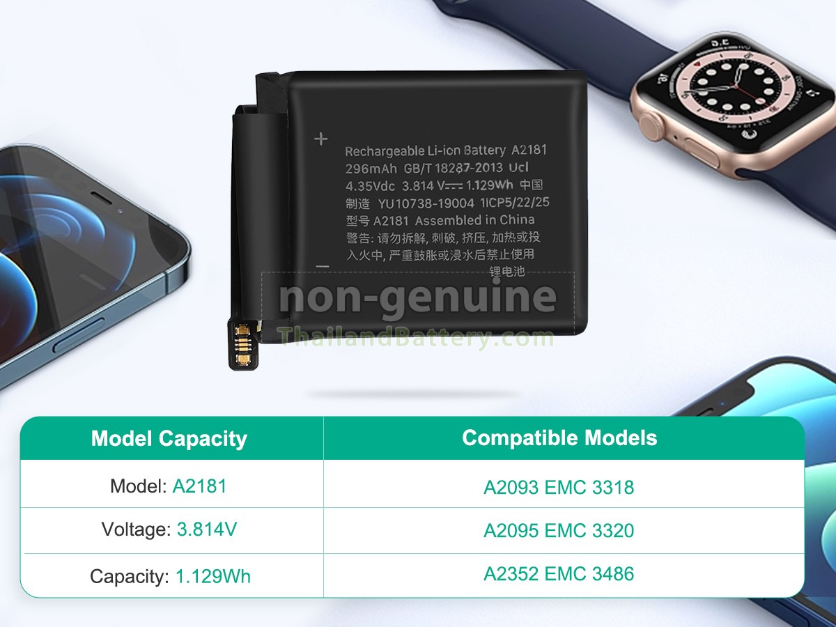 2 เปรียบเทียบแรงดันไฟฟ้าและความจุของแบตเตอรี่กับแบตเตอรี่ Apple WATCH Series 5 44MM LTE ของเรา และตรวจสอบว่าอินเทอร์เฟซและรูปภาพของแบตเตอรี่เหมือนกันกับภาพในเว็บไซต์ของเราหรือไม่