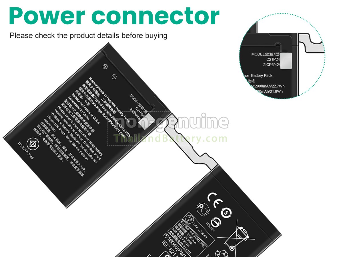 2 เปรียบเทียบแรงดันไฟฟ้าและความจุของแบตเตอรี่กับแบตเตอรี่ Asus ROG PHONE 9 ของเรา และตรวจสอบว่าอินเทอร์เฟซและรูปภาพของแบตเตอรี่เหมือนกันกับภาพในเว็บไซต์ของเราหรือไม่