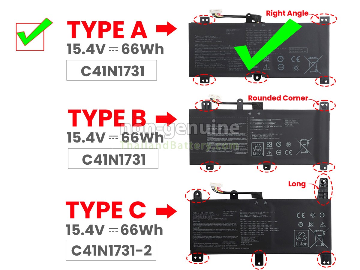 Before placing an order please open your laptop to check your old battery first, ensure order one right battery for your laptop, since there are 3 types batteries. This battery is only fit for ROG Strix G515GV, G515GW, GL504GM, GL504GS, GL504GV, GL504GW.