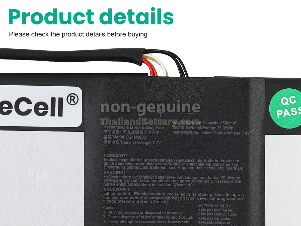 2 เปรียบเทียบแรงดันไฟฟ้าและความจุของแบตเตอรี่กับแบตเตอรี่ Asus Transformer 4 Pro T304UA ของเรา และตรวจสอบว่าอินเทอร์เฟซและรูปภาพของแบตเตอรี่เหมือนกันกับภาพในเว็บไซต์ของเราหรือไม่