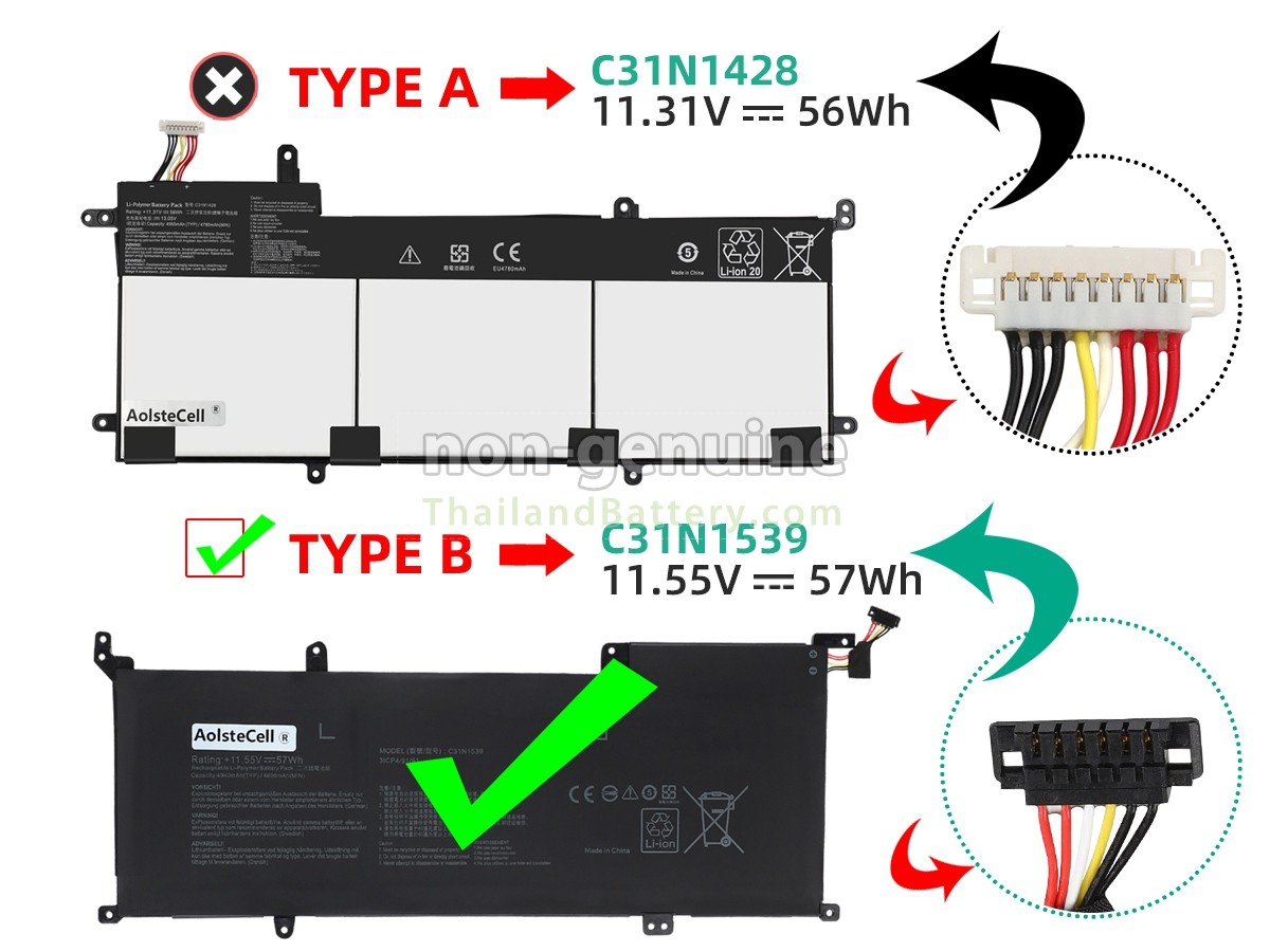 2 เปรียบเทียบแรงดันไฟฟ้าและความจุของแบตเตอรี่กับแบตเตอรี่ Asus ZenBook UX306UA-UB71 ของเรา และตรวจสอบว่าอินเทอร์เฟซและรูปภาพของแบตเตอรี่เหมือนกันกับภาพในเว็บไซต์ของเราหรือไม่