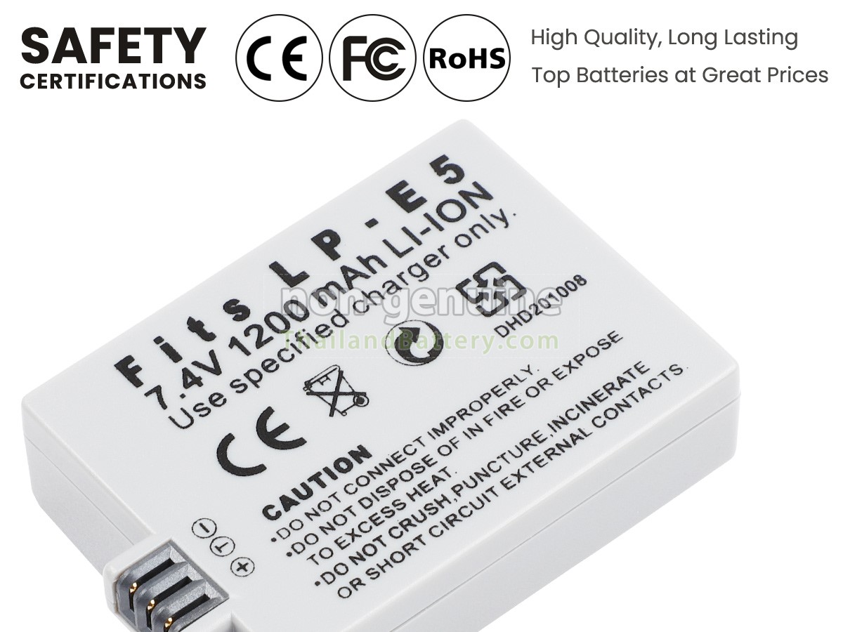 แบตเตอรี่ทดแทน Canon EOS KISS X3 นี้ มีสเปคเดียวกับผู้ผลิตดั้งเดิม สามารถใช้งานได้กับอุปกรณ์ Canon ของท่านได้ 100% ฟังก์ชันและประสิทธิภาพการใช้งานของแบตเตอรี่ยังคงเท่ากับ EOS KISS X3 รุ่นเดิม