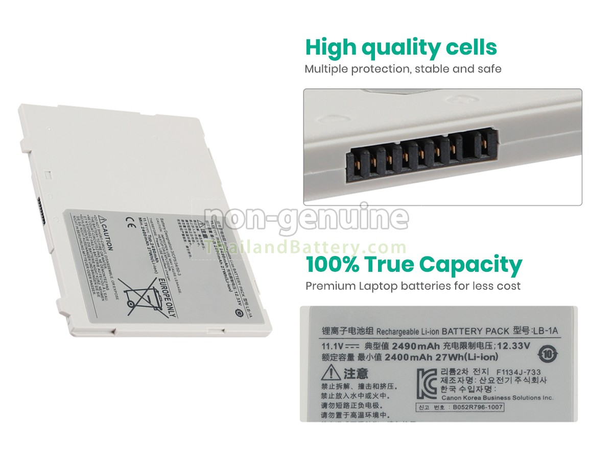 แบตเตอรี่ทดแทน Canon LB-1A นี้ มีสเปคเดียวกับผู้ผลิตดั้งเดิม สามารถใช้งานได้กับอุปกรณ์ Canon ของท่านได้ 100% ฟังก์ชันและประสิทธิภาพการใช้งานของแบตเตอรี่ยังคงเท่ากับ LB-1A รุ่นเดิม