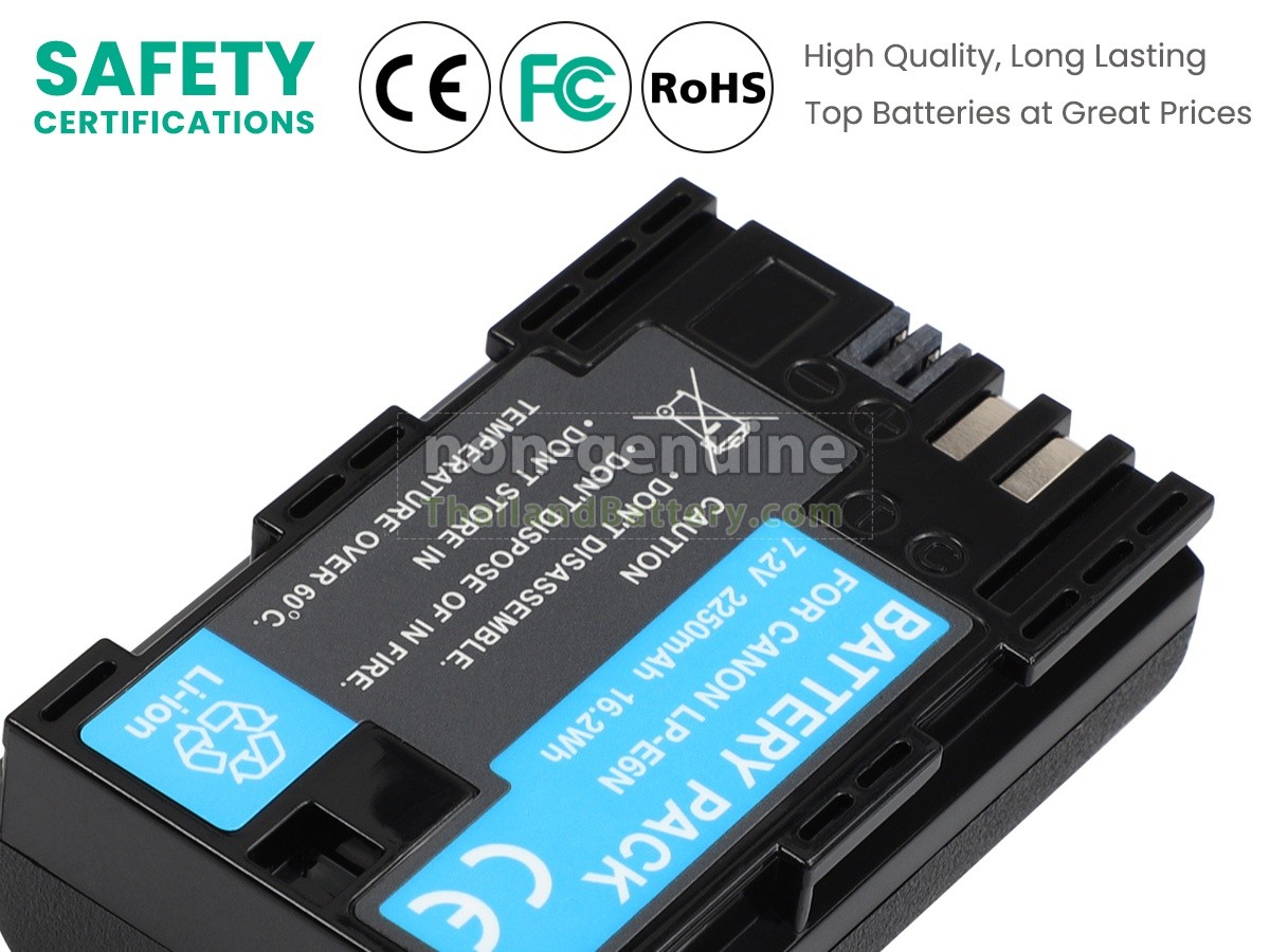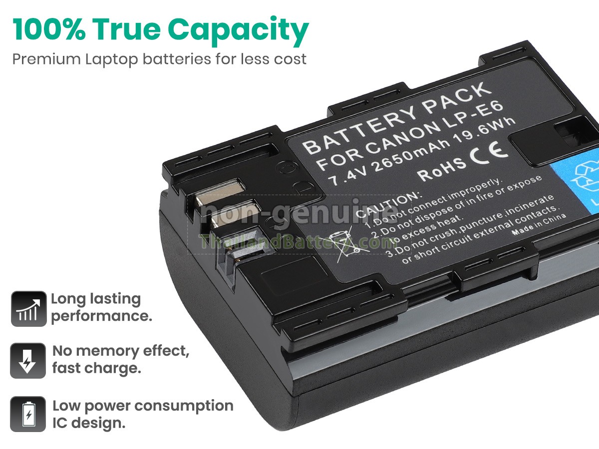 แบตเตอรี่ทดแทน Canon LP-E6N นี้ มีสเปคเดียวกับผู้ผลิตดั้งเดิม สามารถใช้งานได้กับอุปกรณ์ Canon ของท่านได้ 100% ฟังก์ชันและประสิทธิภาพการใช้งานของแบตเตอรี่ยังคงเท่ากับ LP-E6N รุ่นเดิม