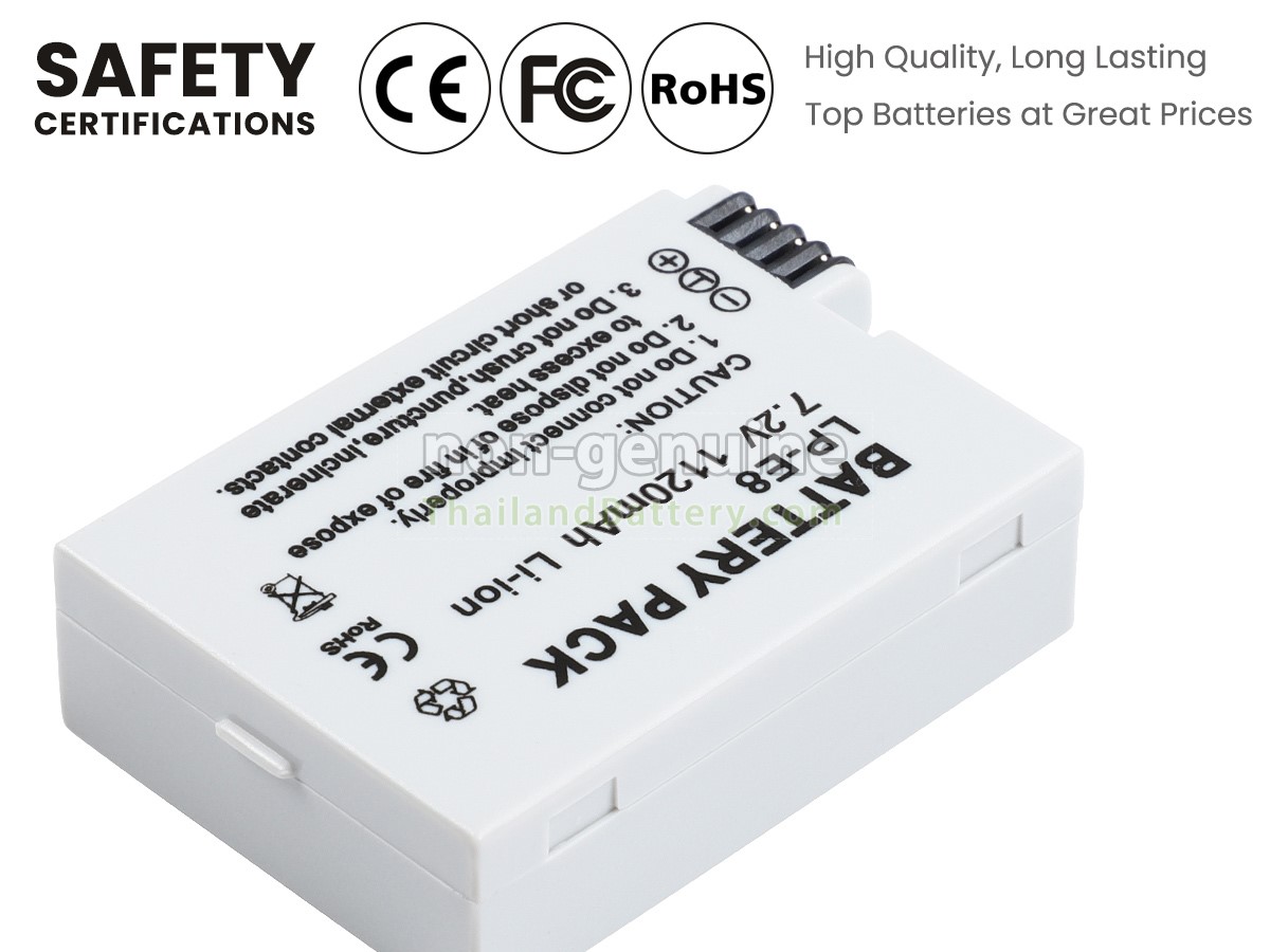 แบตเตอรี่ทดแทน Canon LP-E8 นี้ มีสเปคเดียวกับผู้ผลิตดั้งเดิม สามารถใช้งานได้กับอุปกรณ์ Canon ของท่านได้ 100% ฟังก์ชันและประสิทธิภาพการใช้งานของแบตเตอรี่ยังคงเท่ากับ LP-E8 รุ่นเดิม