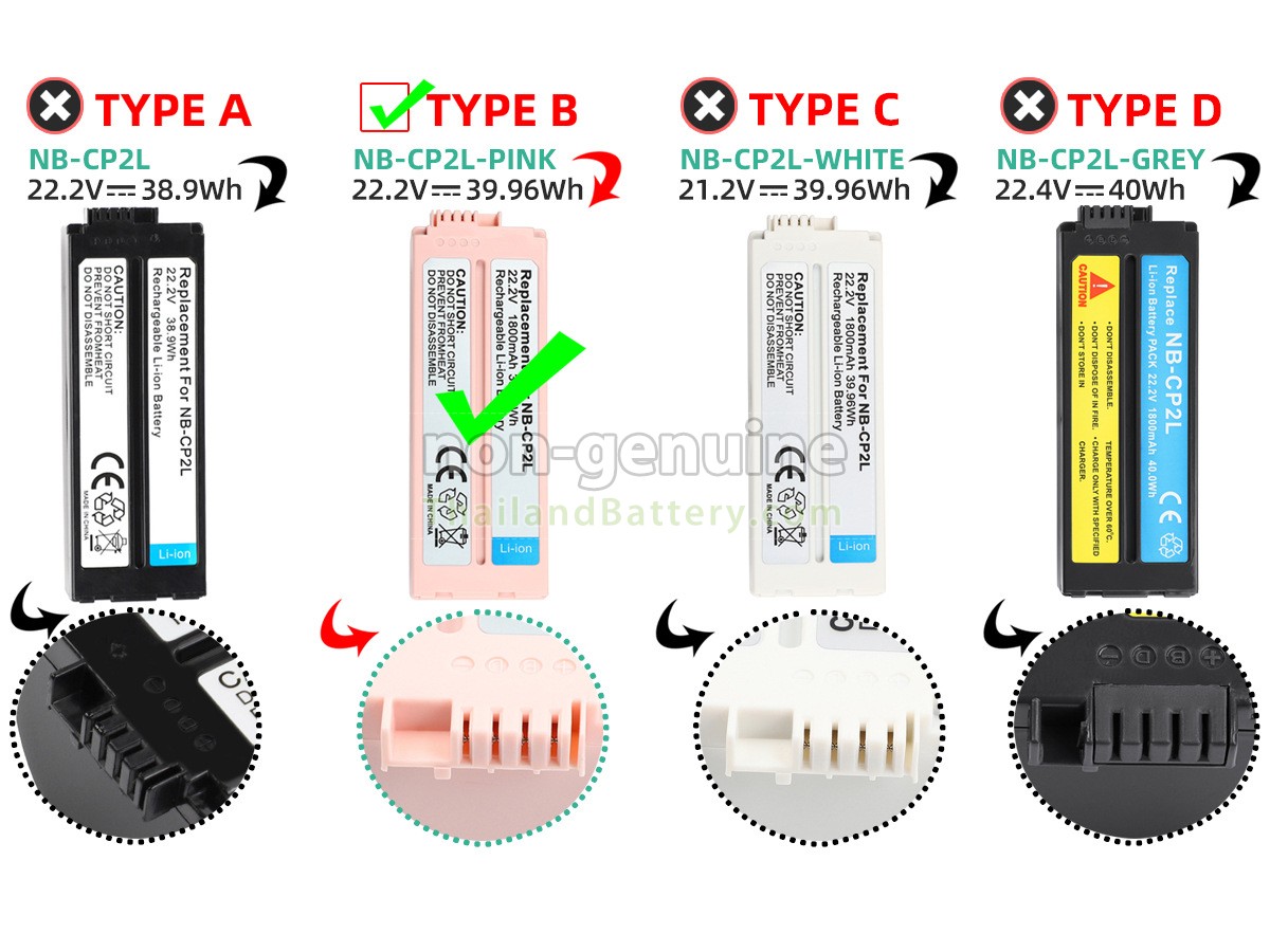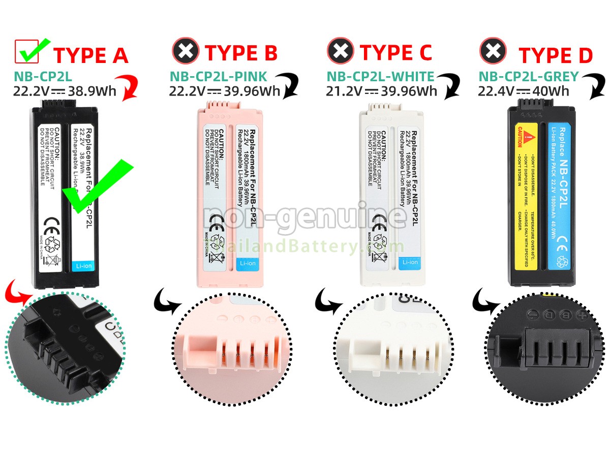 2 เปรียบเทียบแรงดันไฟฟ้าและความจุของแบตเตอรี่กับแบตเตอรี่ Canon SELPHY CP900 ของเรา และตรวจสอบว่าอินเทอร์เฟซและรูปภาพของแบตเตอรี่เหมือนกันกับภาพในเว็บไซต์ของเราหรือไม่
