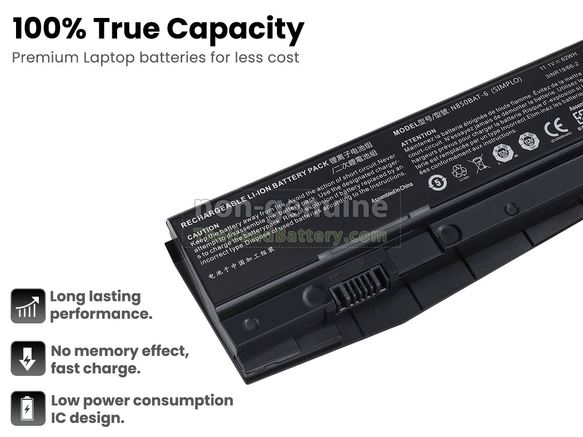 แบตเตอรี่ทดแทน Clevo N850BAT-6 นี้ มีสเปคเดียวกับผู้ผลิตดั้งเดิม สามารถใช้งานได้กับอุปกรณ์ Clevo ของท่านได้ 100% ฟังก์ชันและประสิทธิภาพการใช้งานของแบตเตอรี่ยังคงเท่ากับ N850BAT-6 รุ่นเดิม