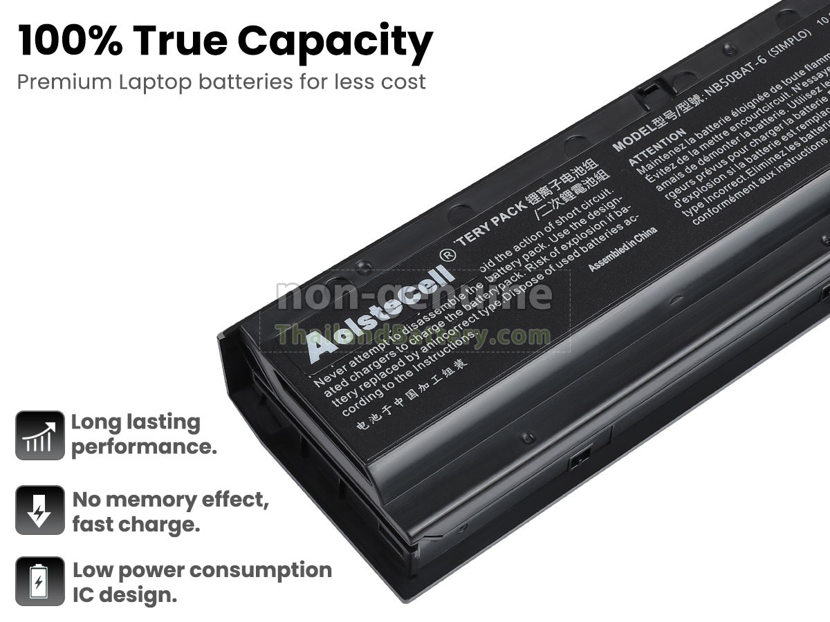 แบตเตอรี่ Clevo NB50TL แต่ละชิ้นทำจากลิเธียมไอออนระดับ A+ คุณภาพสูง ซึ่งเป็นที่ดั้งเดิมจาก Samsung Panasonic และ LG ชิปวงจรอัจฉริยะ วัสดุสามารถทนต่ออุณหภูมิสูงและการสึกหรอ เปลือกแบตเตอรี่ ABS + PC วัสดุที่เป็นมิตรกับสิ่งแวดล้อม ประสิทธิภาพสูง รับรองความปลอดภัยด้วย