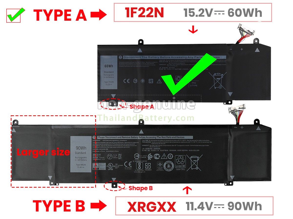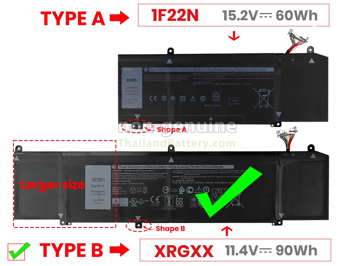 2 เปรียบเทียบแรงดันไฟฟ้าและความจุของแบตเตอรี่กับแบตเตอรี่ Dell Alienware M17 ALW17M-D4736B ของเรา และตรวจสอบว่าอินเทอร์เฟซและรูปภาพของแบตเตอรี่เหมือนกันกับภาพในเว็บไซต์ของเราหรือไม่