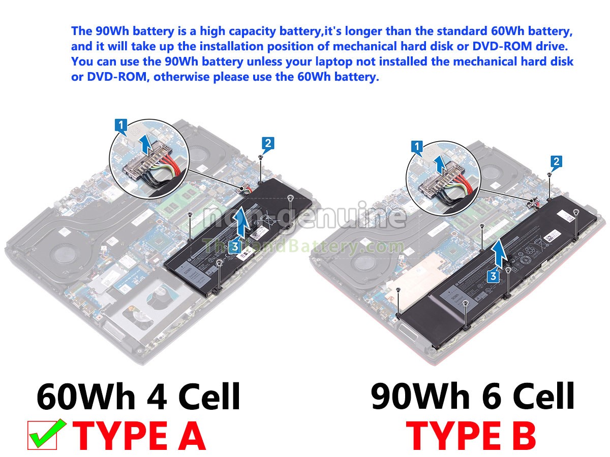 This is a high capacity(90Wh) battery,it's longer than the standard 60Wh battery, and it will take up the installation position of mechanical hard disk or DVD-ROM drive. You can use the 90Wh battery unless your laptop not installed the mechanical hard disk or DVD-ROM, otherwise please use the 60Wh battery.