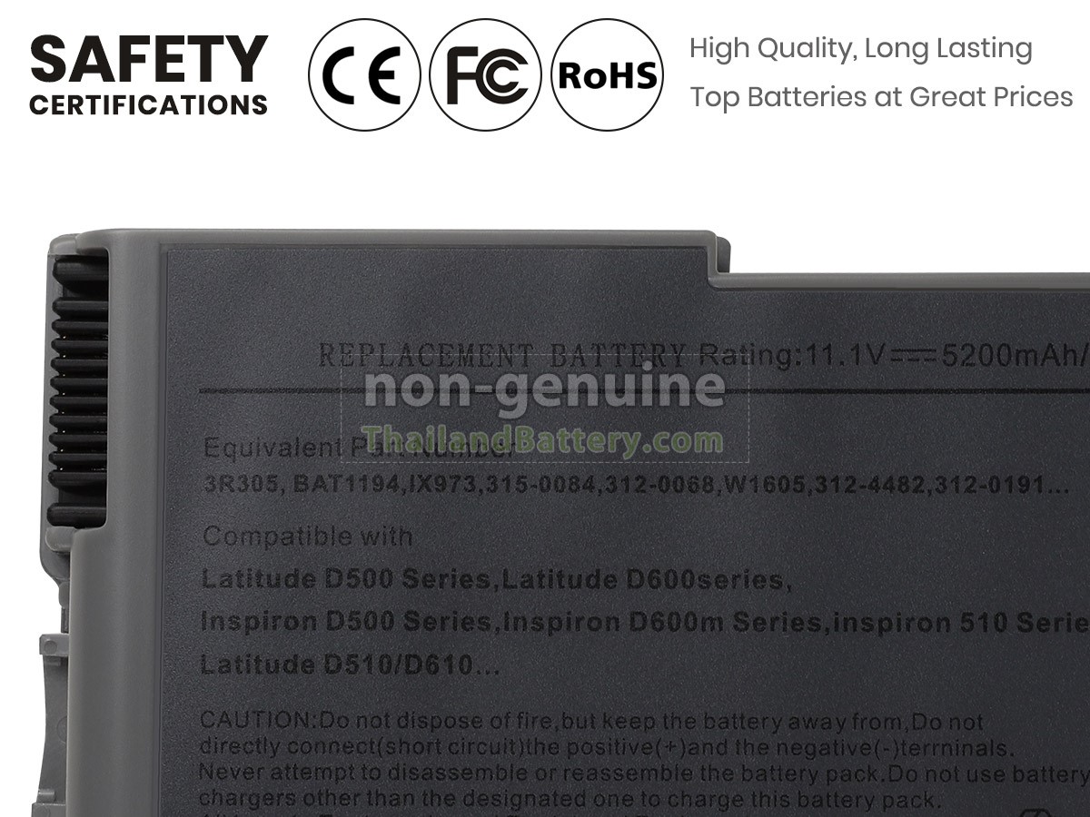 แบตเตอรี่ Dell Latitude D600 ทั้งหมดได้ผ่านการรับรองความปลอดภัยจาก TISI CE และ UL ตามมาตรฐานสากล นอกจากนี้ ก่อนที่สินค้าออกจากโรงงานต้องผ่านการตรวจสอบอย่างเข้มงวดเพื่อปกป้องการใช้งานที่ปลอดภัยของท่าน!