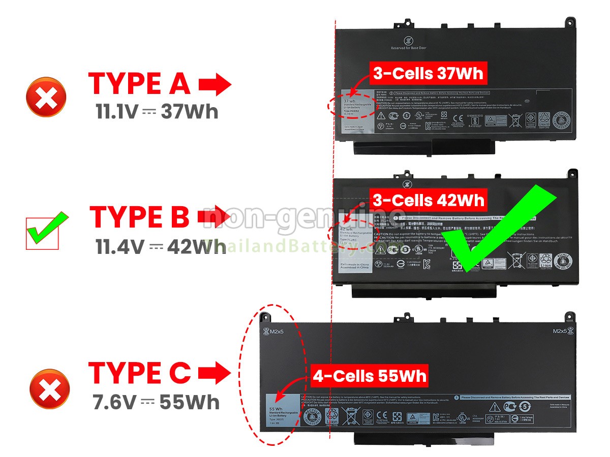 11.1V and 11.4V are compatible, they are in common use. The battery TYPE-A is compatible with TYPE-B. 3 เซลล์ | 42Wh Dell Latitude E7270