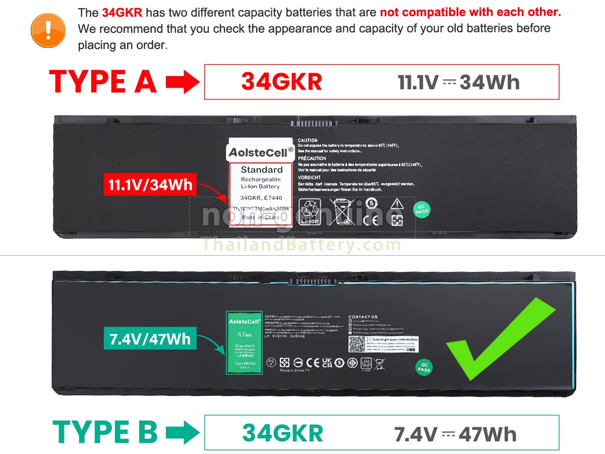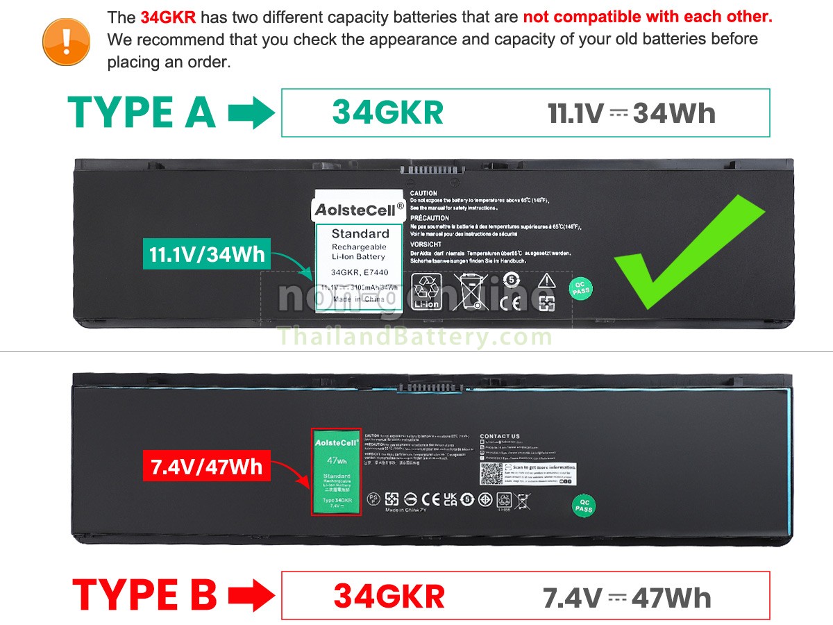 2 เปรียบเทียบแรงดันไฟฟ้าและความจุของแบตเตอรี่กับแบตเตอรี่ Dell Latitude E7440 ของเรา และตรวจสอบว่าอินเทอร์เฟซและรูปภาพของแบตเตอรี่เหมือนกันกับภาพในเว็บไซต์ของเราหรือไม่