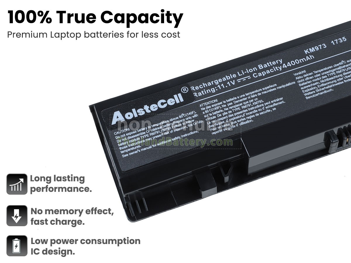 แบตเตอรี่ Dell Studio 1735N แต่ละชิ้นทำจากลิเธียมไอออนระดับ A+ คุณภาพสูง ซึ่งเป็นที่ดั้งเดิมจาก Samsung Panasonic และ LG ชิปวงจรอัจฉริยะ วัสดุสามารถทนต่ออุณหภูมิสูงและการสึกหรอ เปลือกแบตเตอรี่ ABS + PC วัสดุที่เป็นมิตรกับสิ่งแวดล้อม ประสิทธิภาพสูง รับรองความปลอดภัยด้วย