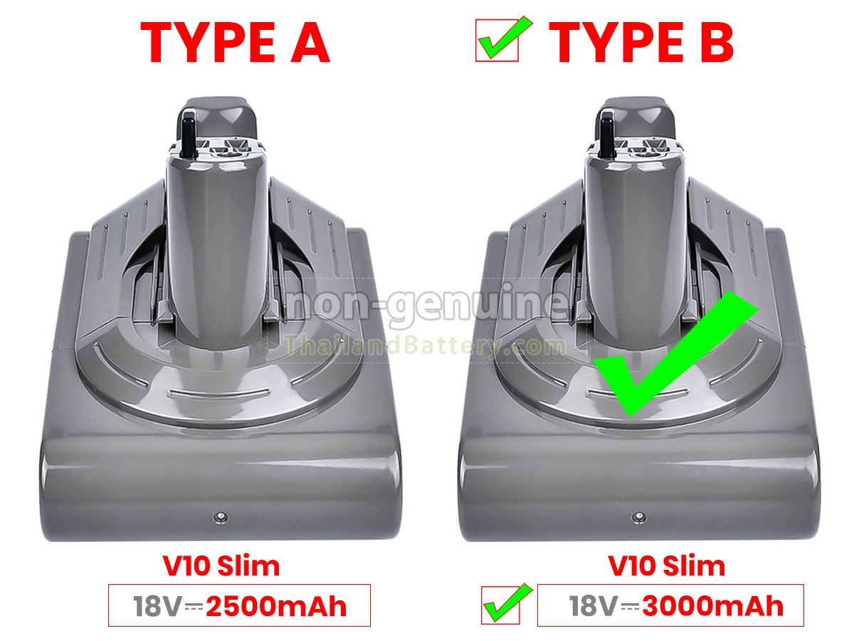 2 เปรียบเทียบแรงดันไฟฟ้าและความจุของแบตเตอรี่กับแบตเตอรี่ Dyson V10 DIGITAL SLIM FLUFFY EXTRA ของเรา และตรวจสอบว่าอินเทอร์เฟซและรูปภาพของแบตเตอรี่เหมือนกันกับภาพในเว็บไซต์ของเราหรือไม่