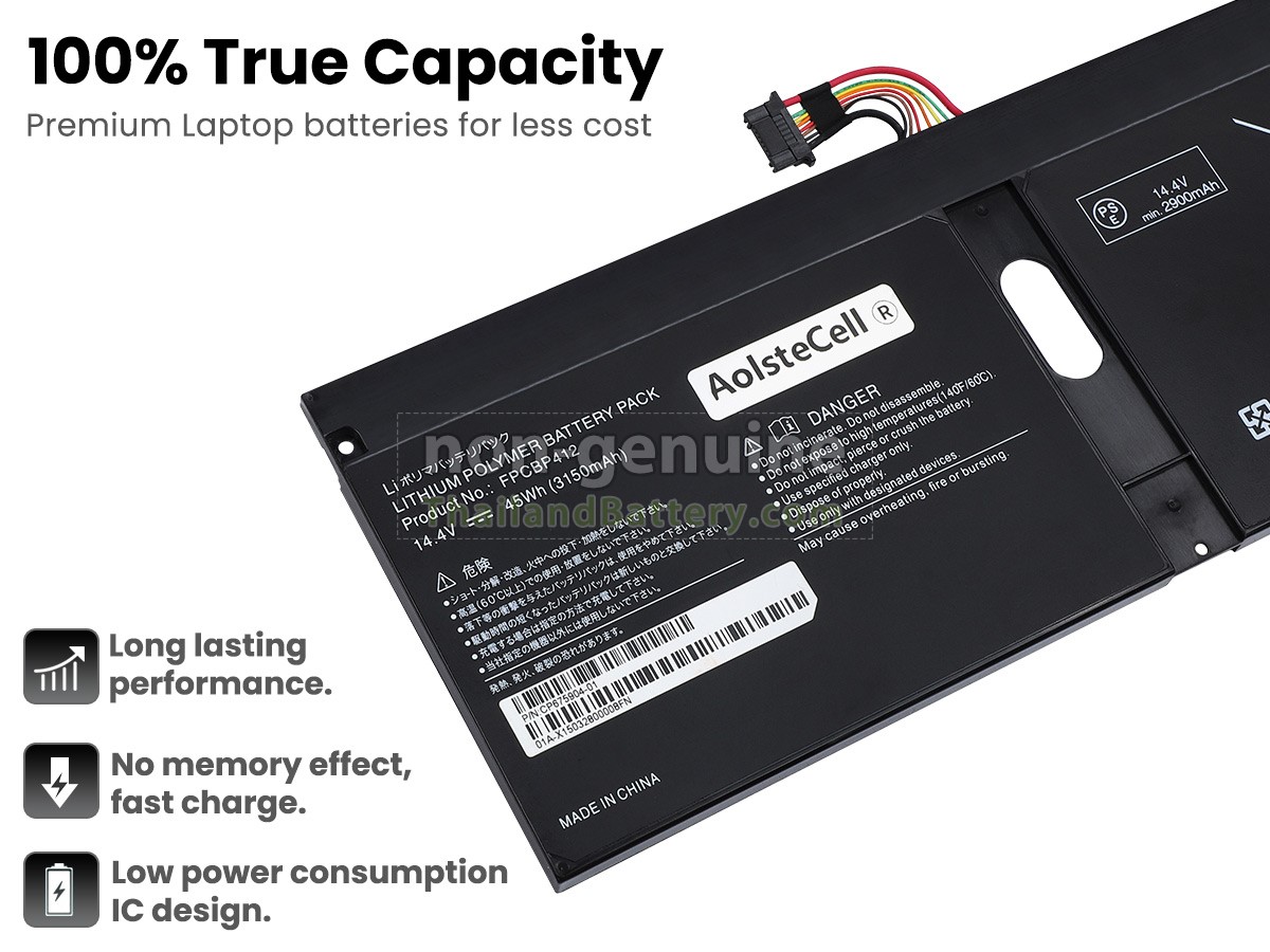 แบตเตอรี่ Fujitsu U9040MXPC1DE แต่ละชิ้นทำจากลิเธียมไอออนระดับ A+ คุณภาพสูง ซึ่งเป็นที่ดั้งเดิมจาก Samsung Panasonic และ LG ชิปวงจรอัจฉริยะ วัสดุสามารถทนต่ออุณหภูมิสูงและการสึกหรอ เปลือกแบตเตอรี่ ABS + PC วัสดุที่เป็นมิตรกับสิ่งแวดล้อม ประสิทธิภาพสูง รับรองความปลอดภัยด้วย