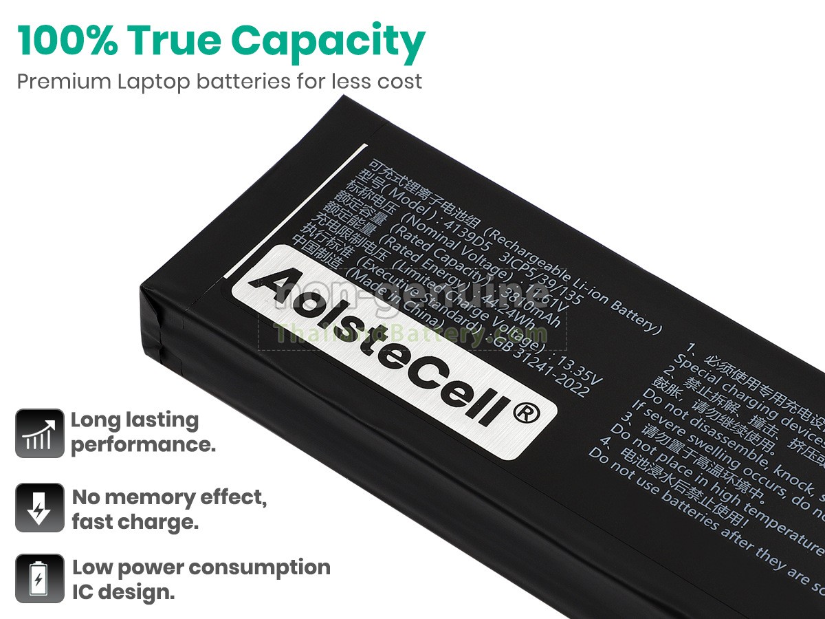 แบตเตอรี่ GPD 4139D5 แต่ละชิ้นทำจากลิเธียมไอออนระดับ A+ คุณภาพสูง ซึ่งเป็นที่ดั้งเดิมจาก Samsung Panasonic และ LG ชิปวงจรอัจฉริยะ วัสดุสามารถทนต่ออุณหภูมิสูงและการสึกหรอ เปลือกแบตเตอรี่ ABS + PC วัสดุที่เป็นมิตรกับสิ่งแวดล้อม ประสิทธิภาพสูง รับรองความปลอดภัยด้วย