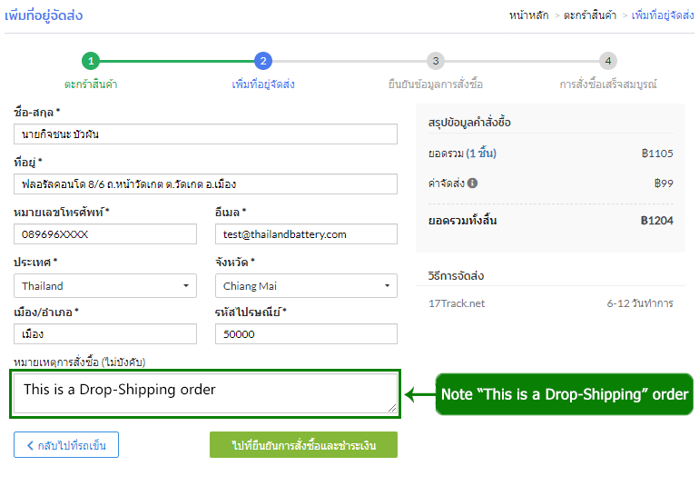 - 3Note "This is a Drop-Shipping order" on shopping cart page;