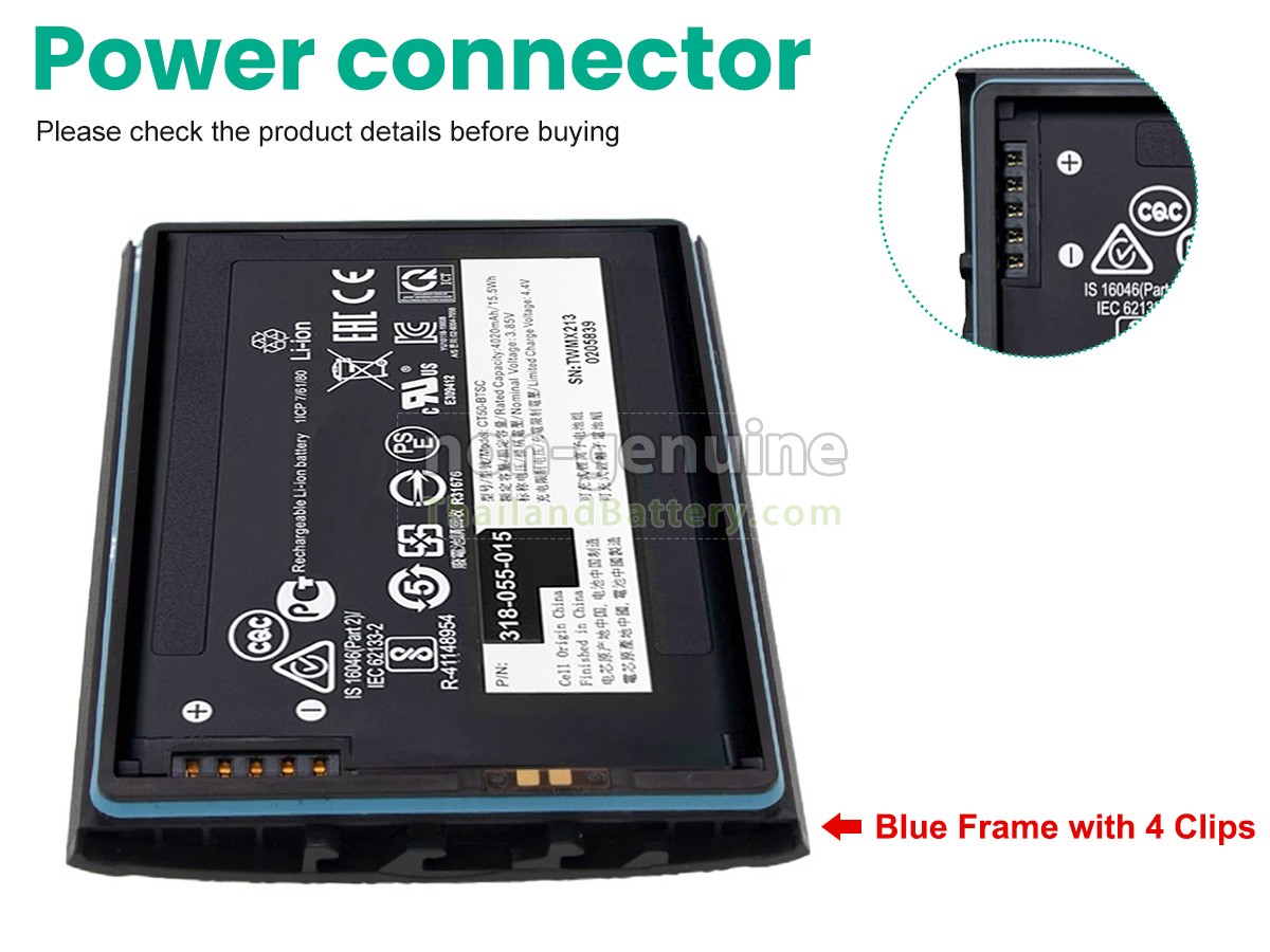 2 เปรียบเทียบแรงดันไฟฟ้าและความจุของแบตเตอรี่กับแบตเตอรี่ Honeywell CT40XP ของเรา และตรวจสอบว่าอินเทอร์เฟซและรูปภาพของแบตเตอรี่เหมือนกันกับภาพในเว็บไซต์ของเราหรือไม่