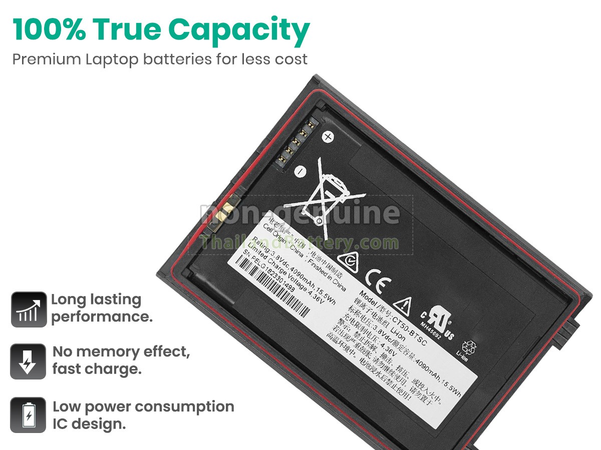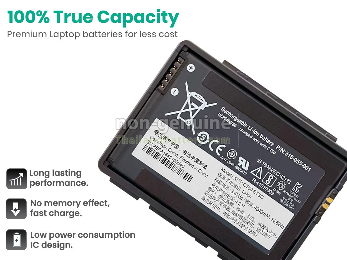 แบตเตอรี่ Honeywell CT40XP แต่ละชิ้นทำจากลิเธียมไอออนระดับ A+ คุณภาพสูง ซึ่งเป็นที่ดั้งเดิมจาก Samsung Panasonic และ LG ชิปวงจรอัจฉริยะ วัสดุสามารถทนต่ออุณหภูมิสูงและการสึกหรอ เปลือกแบตเตอรี่ ABS + PC วัสดุที่เป็นมิตรกับสิ่งแวดล้อม ประสิทธิภาพสูง รับรองความปลอดภัยด้วย