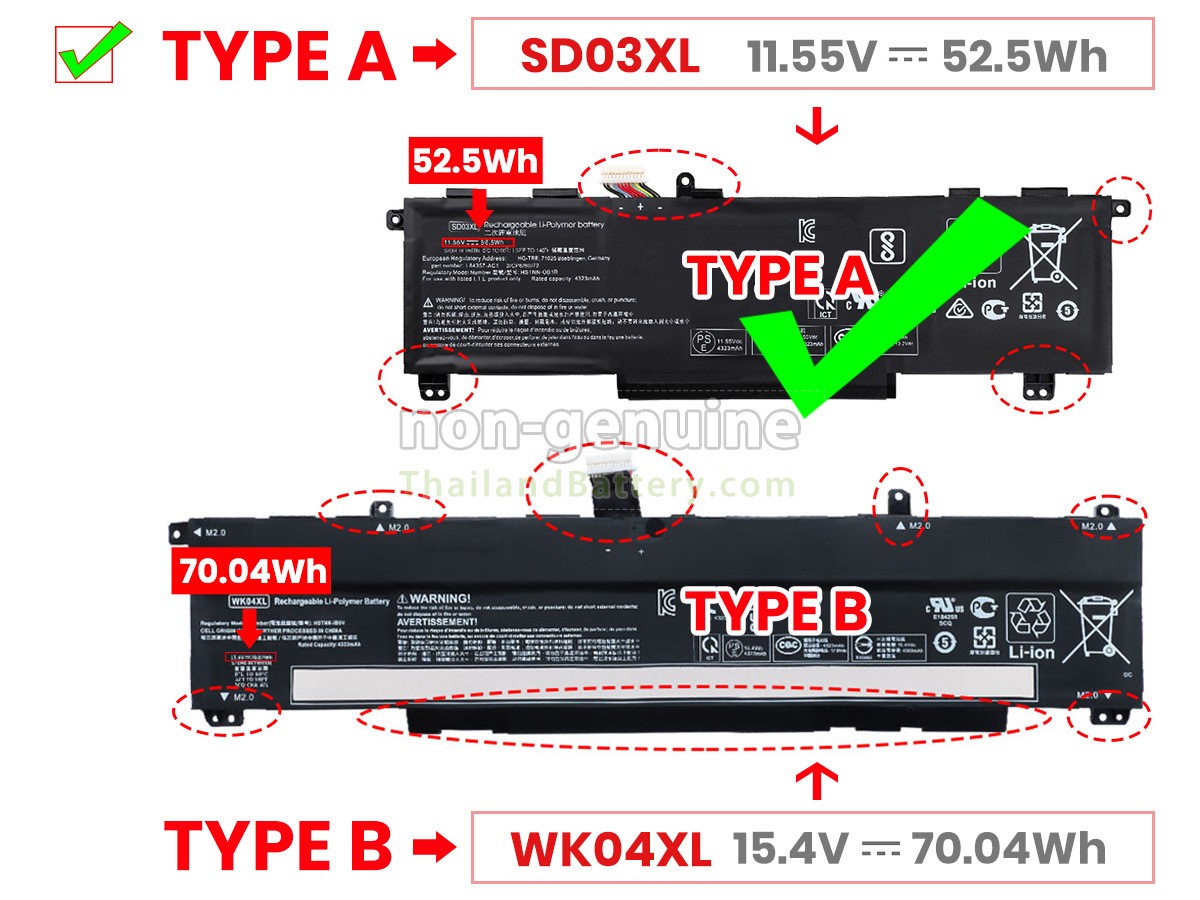 2 เปรียบเทียบแรงดันไฟฟ้าและความจุของแบตเตอรี่กับแบตเตอรี่ HP VICTUS 15-FA1061NE(7Z8B6EA) ของเรา และตรวจสอบว่าอินเทอร์เฟซและรูปภาพของแบตเตอรี่เหมือนกันกับภาพในเว็บไซต์ของเราหรือไม่