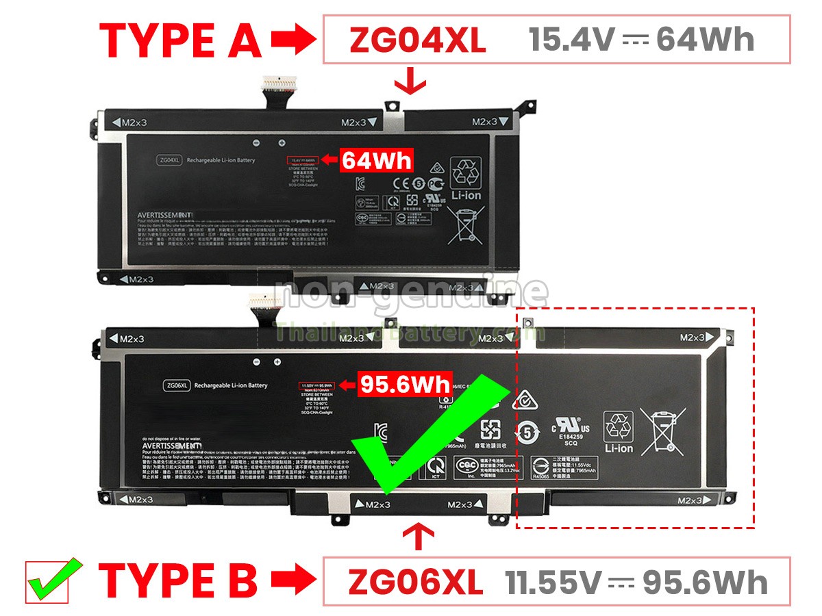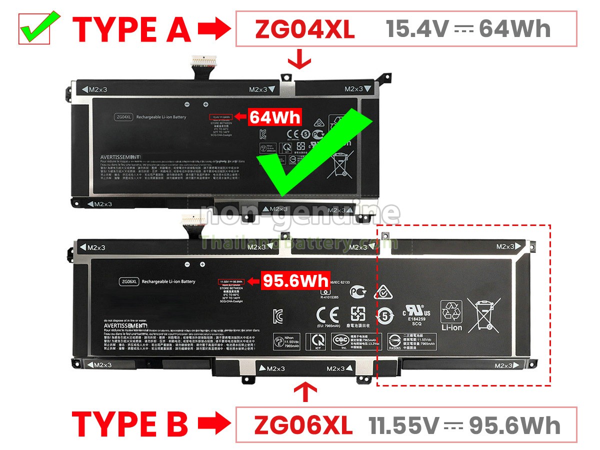 2 เปรียบเทียบแรงดันไฟฟ้าและความจุของแบตเตอรี่กับแบตเตอรี่ HP ZBook STUDIO X360 G5 BASE MODEL Convertible Workstation ของเรา และตรวจสอบว่าอินเทอร์เฟซและรูปภาพของแบตเตอรี่เหมือนกันกับภาพในเว็บไซต์ของเราหรือไม่