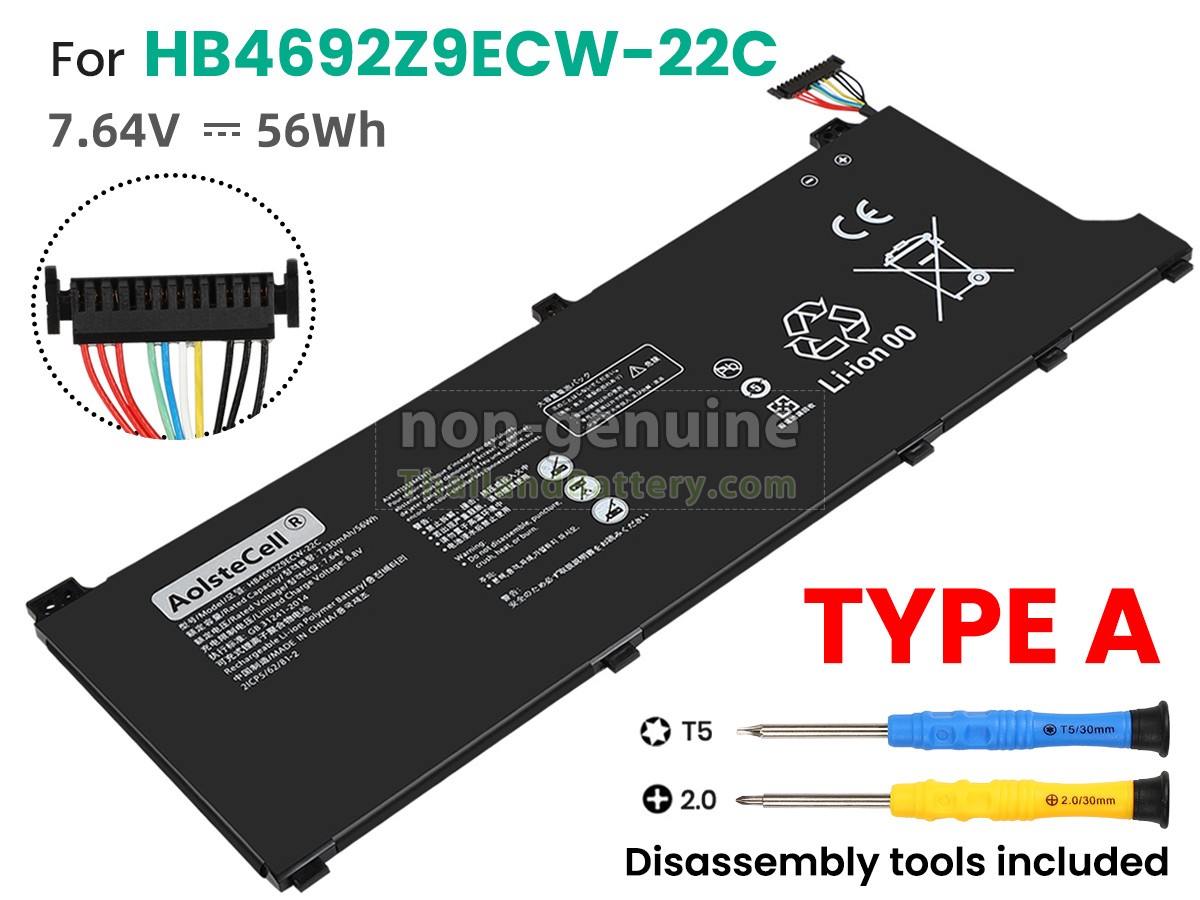 2 เปรียบเทียบแรงดันไฟฟ้าและความจุของแบตเตอรี่กับแบตเตอรี่ Huawei MATEBOOK D 14 2023 ของเรา และตรวจสอบว่าอินเทอร์เฟซและรูปภาพของแบตเตอรี่เหมือนกันกับภาพในเว็บไซต์ของเราหรือไม่