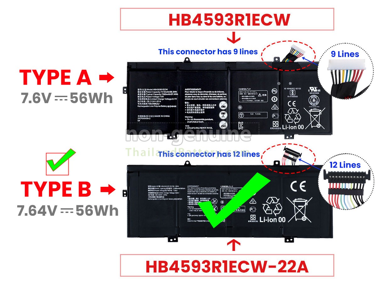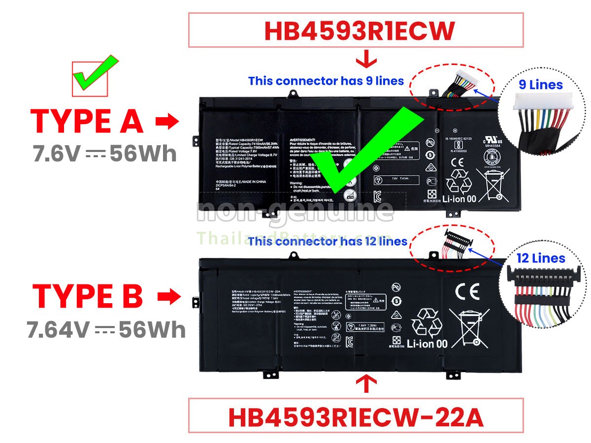 2 เปรียบเทียบแรงดันไฟฟ้าและความจุของแบตเตอรี่กับแบตเตอรี่ Huawei MATEBOOK X PRO VLT-W50 ของเรา และตรวจสอบว่าอินเทอร์เฟซและรูปภาพของแบตเตอรี่เหมือนกันกับภาพในเว็บไซต์ของเราหรือไม่
