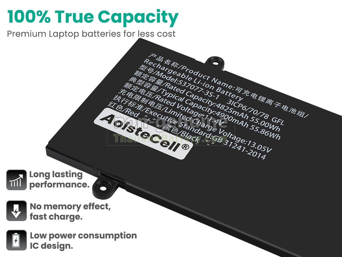 คำตอบ แบตเตอรี่ทั้งหมดที่ขายใน Thailandbattery.com เป็นแบตเตอรี่ของแท้ที่ทดแทนสำหรับ OEM เซลล์ดั้งเดิมและชิปอัจฉริยะที่เอฟเฟกต์การใช้งานเท่ากับแบตเตอรี่ดั้งเดิมหรือสูงกว่าแบตเตอรี่ดั้งเดิม ด้วยวิธีนี้ แบรนด์พรีเมี่ยมที่ราคาไม่แพงและคุณภาพดีๆ จริงๆแล้ว แบตเตอรี่ 537077-3S ดั้งเดิมนั้นประกอบด้วยอุปกรณ์เสริมของบุคคลที่สาม และติดเครื่องหมายแบรนด์ของตัวเองบนแบตเตอรี่เท่านั้น ที่ Thailandbattery.com ท่านสามารถซื้อผลิตภัณฑ์คุณภาพสูงด้วยราคาไม่แพง!