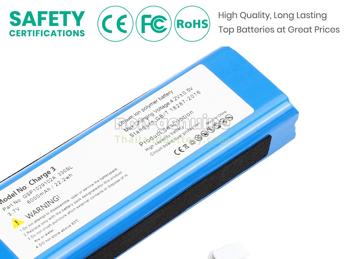 แบตเตอรี่ JBL CHARGE 3 2016 ทั้งหมดได้ผ่านการรับรองความปลอดภัยจาก TISI CE และ UL ตามมาตรฐานสากล นอกจากนี้ ก่อนที่สินค้าออกจากโรงงานต้องผ่านการตรวจสอบอย่างเข้มงวดเพื่อปกป้องการใช้งานที่ปลอดภัยของท่าน!