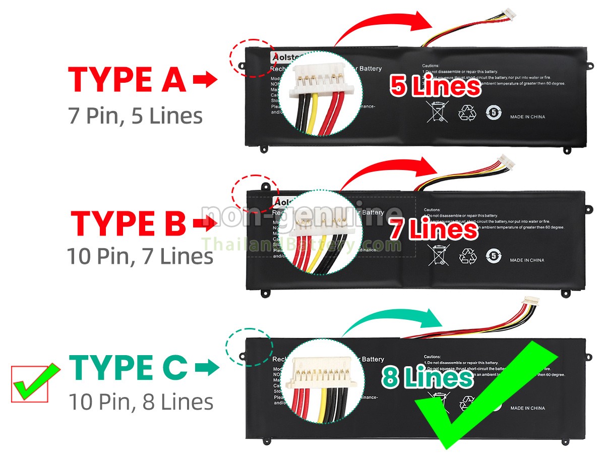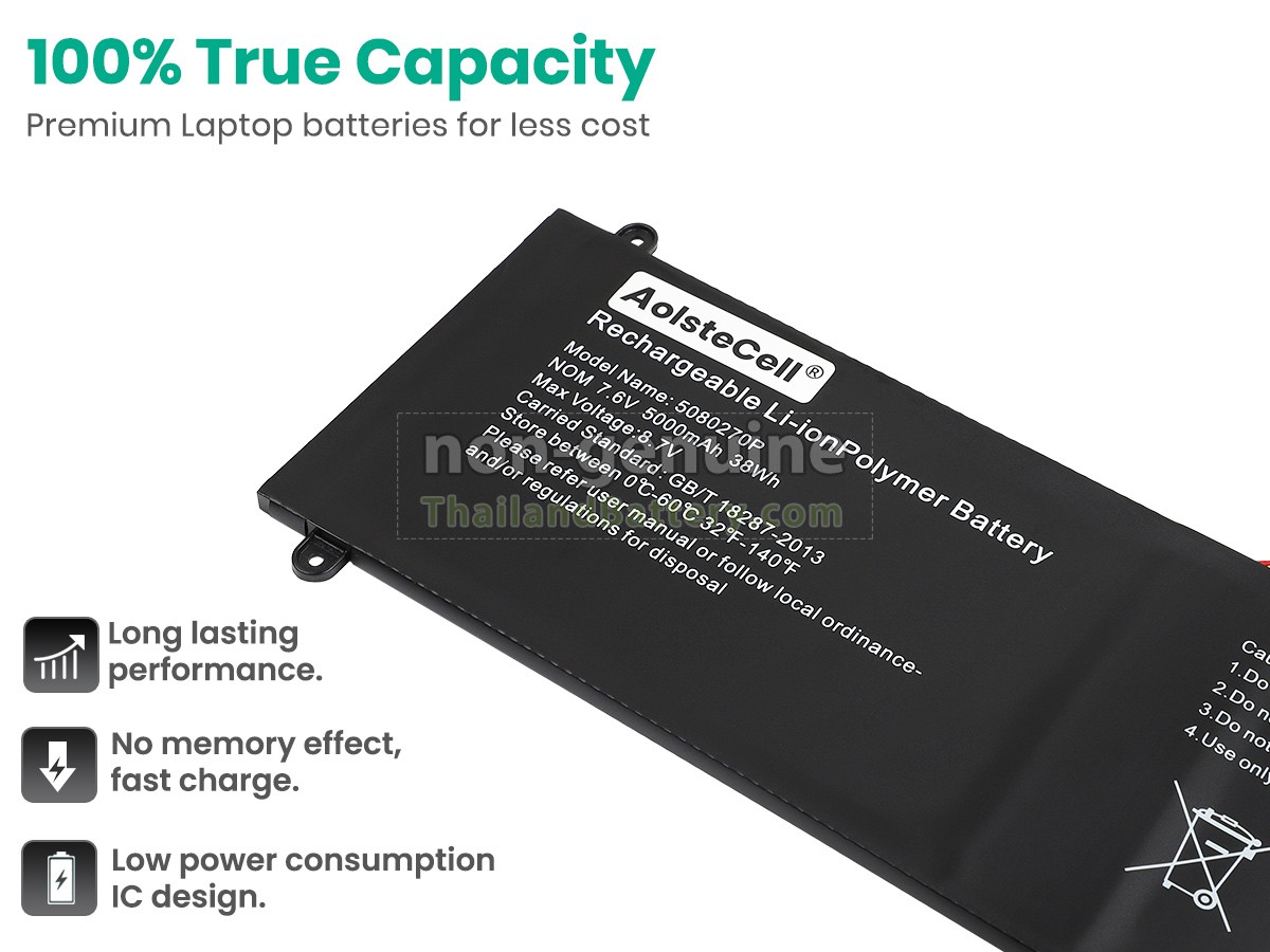 Please disassemble your computer before placing an order and make sure your 5080270P battery is wired to 【5 wires】. 2 เซลล์ | 38Wh Jumper 5080270P