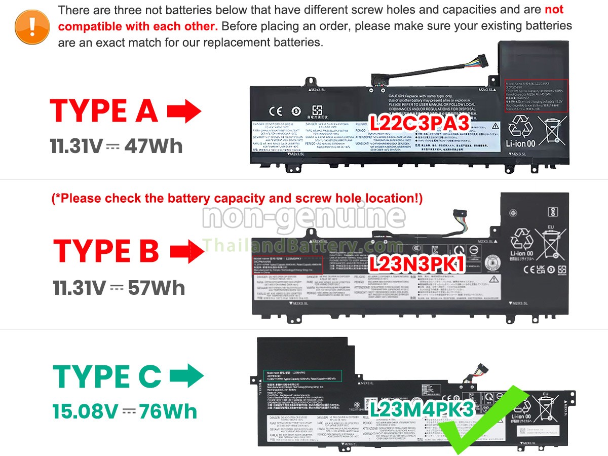 2 เปรียบเทียบแรงดันไฟฟ้าและความจุของแบตเตอรี่กับแบตเตอรี่ Lenovo IdeaPad SLIM 5 16AHP9-83DD0039MX ของเรา และตรวจสอบว่าอินเทอร์เฟซและรูปภาพของแบตเตอรี่เหมือนกันกับภาพในเว็บไซต์ของเราหรือไม่