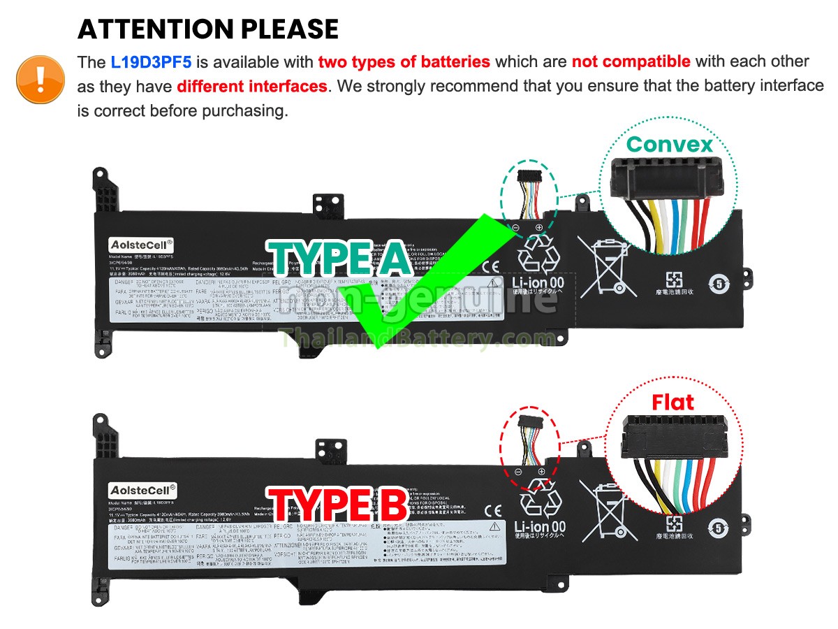 Please open the computer before placing the order to make sure that the battery interface shape is consistent with the picture. 3 เซลล์ | 45Wh Lenovo L19D3PF5