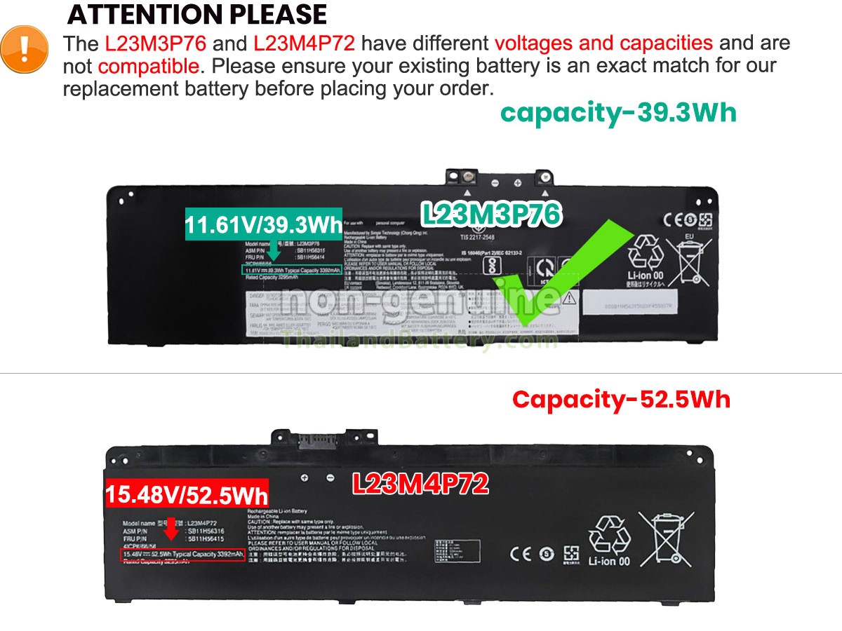 2 เปรียบเทียบแรงดันไฟฟ้าและความจุของแบตเตอรี่กับแบตเตอรี่ Lenovo ThinkPad T14 GEN 5-21MLS01100 ของเรา และตรวจสอบว่าอินเทอร์เฟซและรูปภาพของแบตเตอรี่เหมือนกันกับภาพในเว็บไซต์ของเราหรือไม่