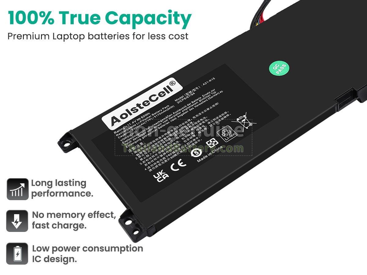 คำตอบ แบตเตอรี่ทั้งหมดที่ขายใน Thailandbattery.com เป็นแบตเตอรี่ของแท้ที่ทดแทนสำหรับ OEM เซลล์ดั้งเดิมและชิปอัจฉริยะที่เอฟเฟกต์การใช้งานเท่ากับแบตเตอรี่ดั้งเดิมหรือสูงกว่าแบตเตอรี่ดั้งเดิม ด้วยวิธีนี้ แบรนด์พรีเมี่ยมที่ราคาไม่แพงและคุณภาพดีๆ จริงๆแล้ว แบตเตอรี่ A21-K15 ดั้งเดิมนั้นประกอบด้วยอุปกรณ์เสริมของบุคคลที่สาม และติดเครื่องหมายแบรนด์ของตัวเองบนแบตเตอรี่เท่านั้น ที่ Thailandbattery.com ท่านสามารถซื้อผลิตภัณฑ์คุณภาพสูงด้วยราคาไม่แพง!