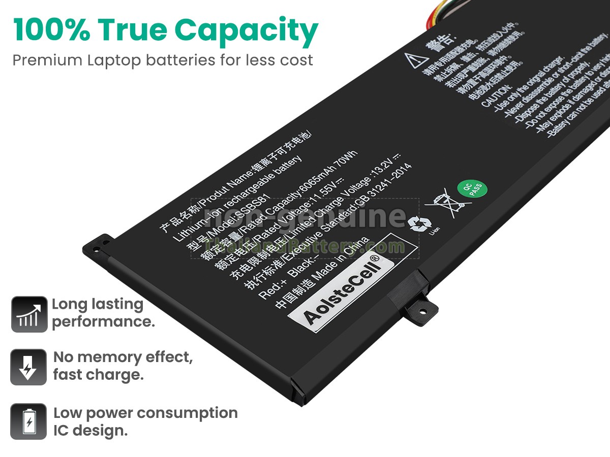 แบตเตอรี่ทดแทน Mechrevo 16 PRO นี้ มีสเปคเดียวกับผู้ผลิตดั้งเดิม สามารถใช้งานได้กับอุปกรณ์ Mechrevo ของท่านได้ 100% ฟังก์ชันและประสิทธิภาพการใช้งานของแบตเตอรี่ยังคงเท่ากับ 16 PRO รุ่นเดิม