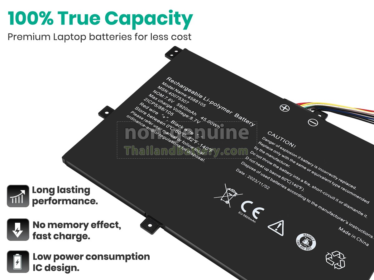 แบตเตอรี่ทดแทน Medion 4588105 นี้ มีสเปคเดียวกับผู้ผลิตดั้งเดิม สามารถใช้งานได้กับอุปกรณ์ Medion ของท่านได้ 100% ฟังก์ชันและประสิทธิภาพการใช้งานของแบตเตอรี่ยังคงเท่ากับ 4588105 รุ่นเดิม