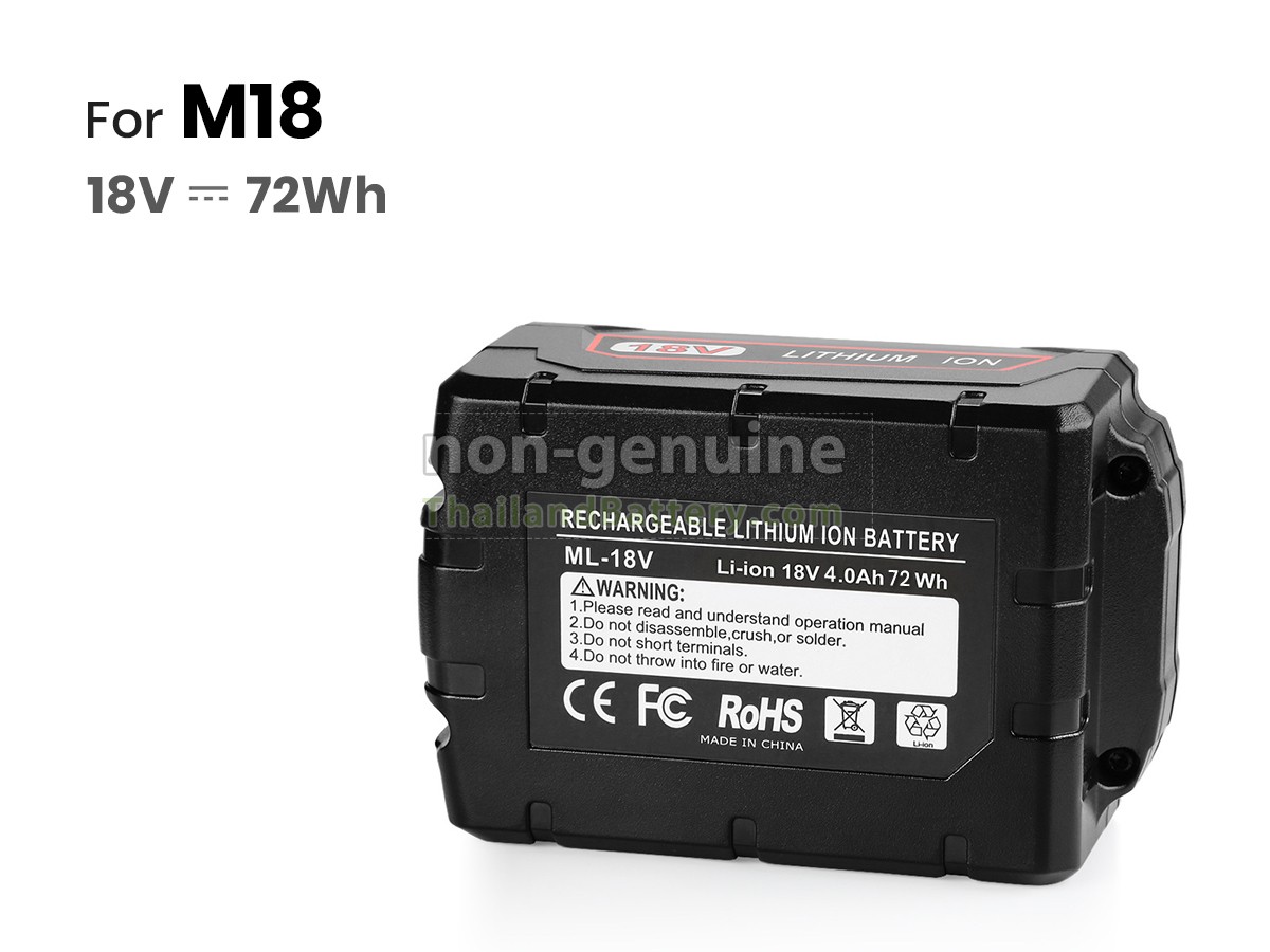 แบตเตอรี่ทดแทน Milwaukee M18B5 นี้ มีสเปคเดียวกับผู้ผลิตดั้งเดิม สามารถใช้งานได้กับอุปกรณ์ Milwaukee ของท่านได้ 100% ฟังก์ชันและประสิทธิภาพการใช้งานของแบตเตอรี่ยังคงเท่ากับ M18B5 รุ่นเดิม